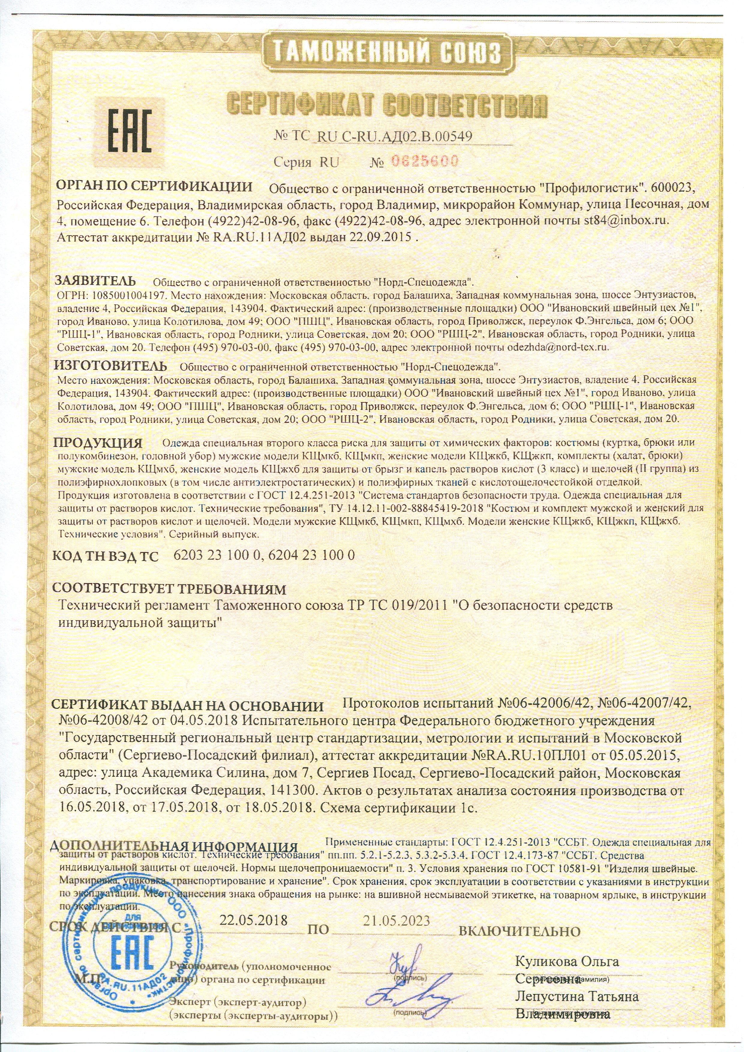 Сертификат на товар - Халат женский КЩС, лавсан (размер 48-50, рост 158-164)