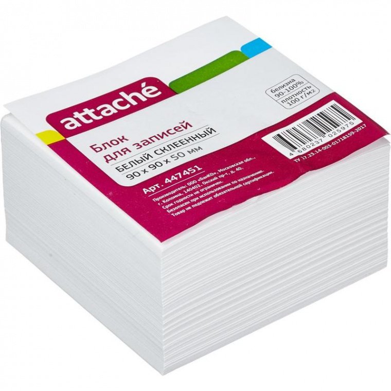 Сертификат на товар - Блок для записей Attache 90x90x50 мм белый (плотность 100 г/кв.м)