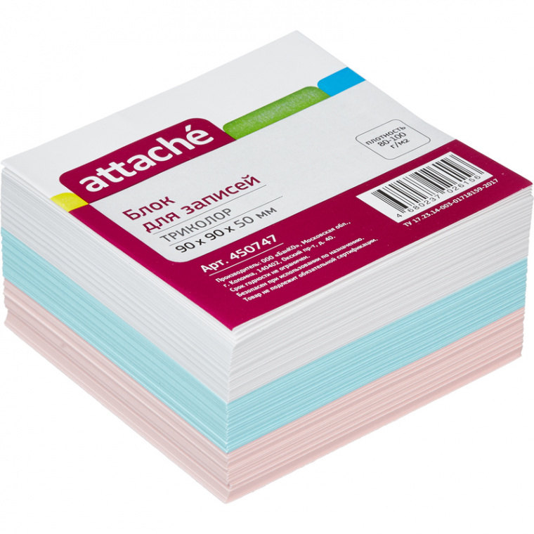 Сертификат на товар - Блок для записей Attache 90x90x50 мм разноцветный (плотность 80-100 г/кв.м)