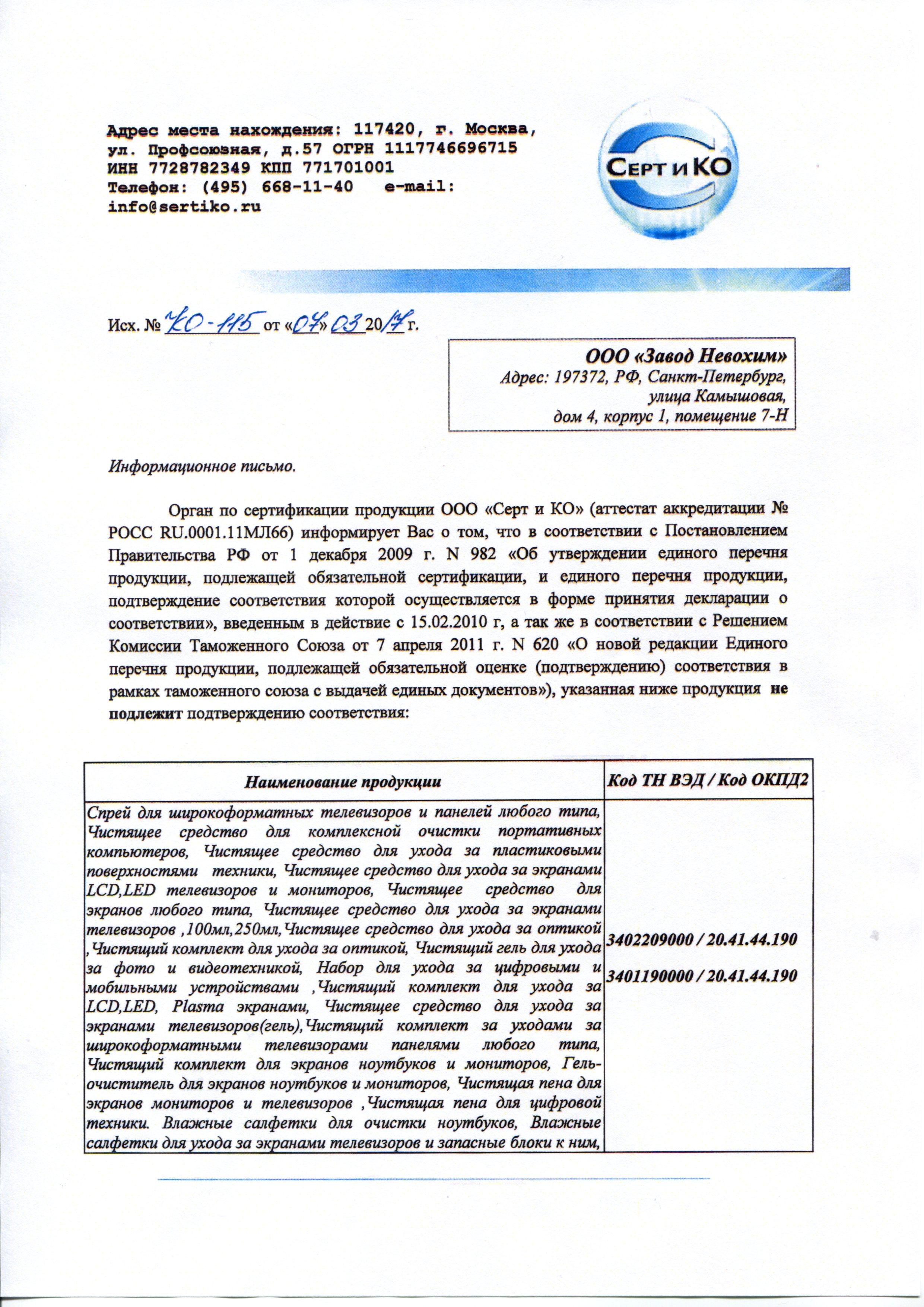 Сертификат на товар - Пена Promega office Professional для экранов с микрофиброй, 180 мл
