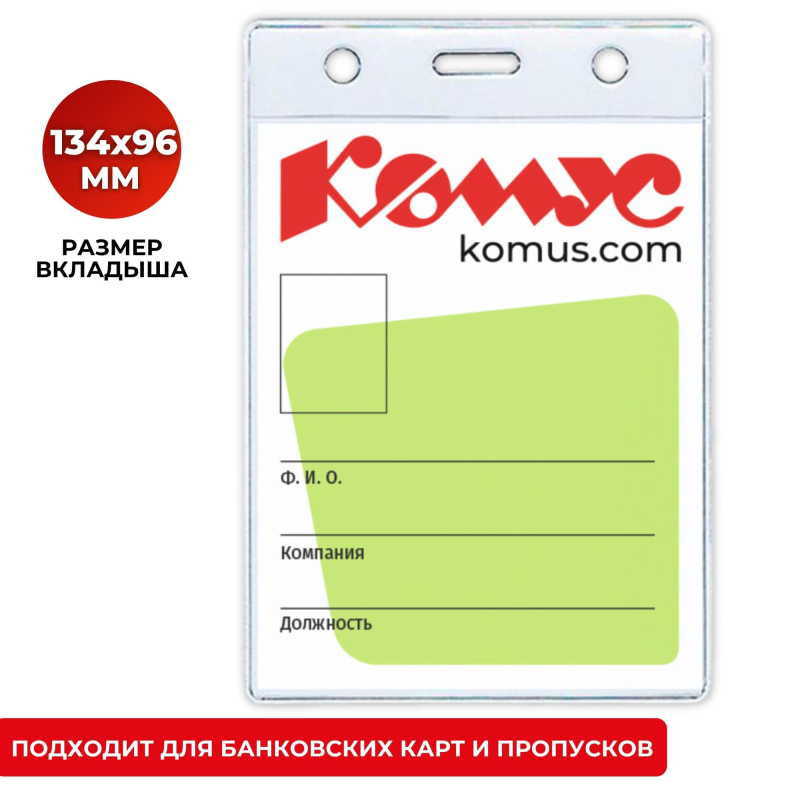 Бейдж Комус вертикальный, выполнен из прозрачного гладкого пластика, плотность 250 мкм. Размер бейджа 155x102 мм. Размер кармана для вкладыша - 96x134 мм. Карман для бейджа под ретрактор, ленту с клипсой, клипсу с булавкой, шнур, карабин. Предназначен для использования на семинарах, конференциях, выставках и прочих мероприятиях.