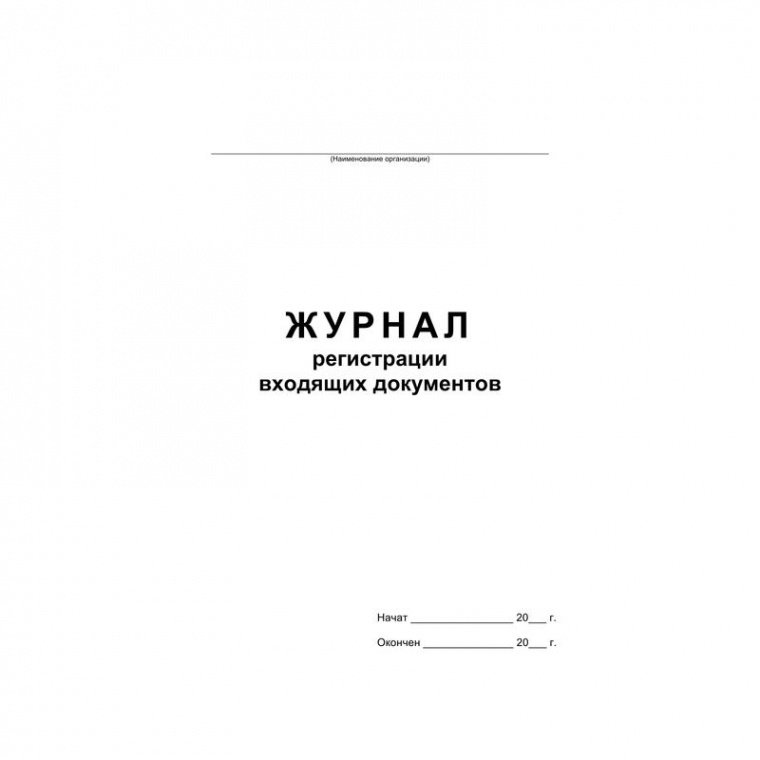 Журнал регистрации входящих документов, офсет, скрепка 48л. Обложка выполнена из белого картона, внутренний блок — офсетная бумага. На обложке отведено место для наименования организации, сроков начала и окончания регистрации. Внутренний блок содержит типовые графы, отражающие движение документа: «Дата поступления», «Регистрационный номер документа», «Корреспондент», «Дата документа», «Номер документа», «Краткое содержание документа», «Исполнители», «Задание», «Срок исполнения», «Автор резолюции», «Дата постановки резолюции», «Дополнительные сведения о документе», «Расписка в получении», «Отметка об исполнении».