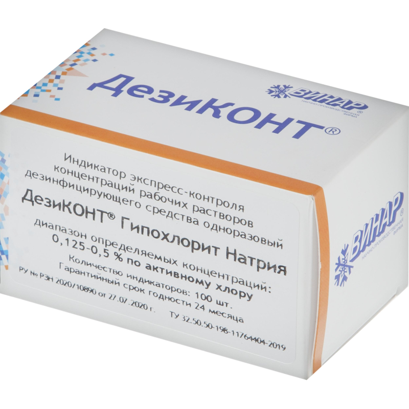 Дезиконт-Гипохлорит Натрия - индикаторные полоски экспресс-контроля концентраций рабочих растворов гипохлорита натрия являются изделиями однократного применения и предназначены для визуального контроля растворов гипохлорита натрия, получаемых на установках Санер (Санер-5-30, Санер-5-120, Санер-5-240, Санер-5-400) и КРОНТ-УМЭМ-ЭКО. В комплект поставки входят: индикаторные полоски; инструкция по применению; банка (пенал); элемент сравнения (может быть нанесен на банку (пенал)); контрольные этикетки; упаковочная коробка. ТУ 9398-038-11764404-2003.