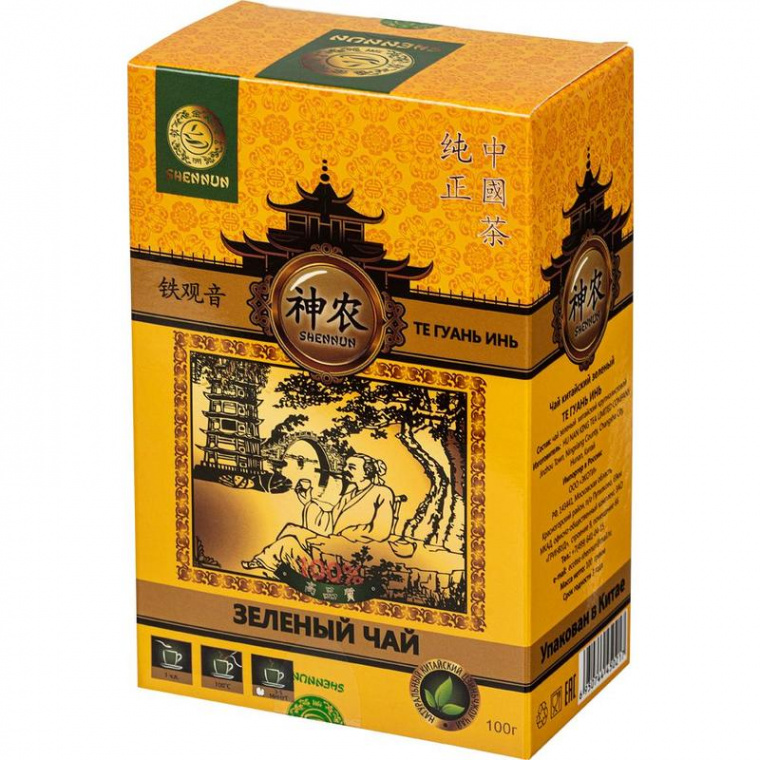 Чай Shennun Те Гуань Инь зеленый 100 г — это полуферментированный крупнолистовой чай, который занимает промежуточное положение между привычными нам зеленым и черным чаем. Производится такой напиток из зрелых листьев, отличающихся от тех, что собираются для изготовления зеленого чая. Светло-зеленый настой обладает ярким, цветочным ароматом с выразительными нотками свежей сирени, которые также присутствуют в его освежающем, сладковатом вкусе.