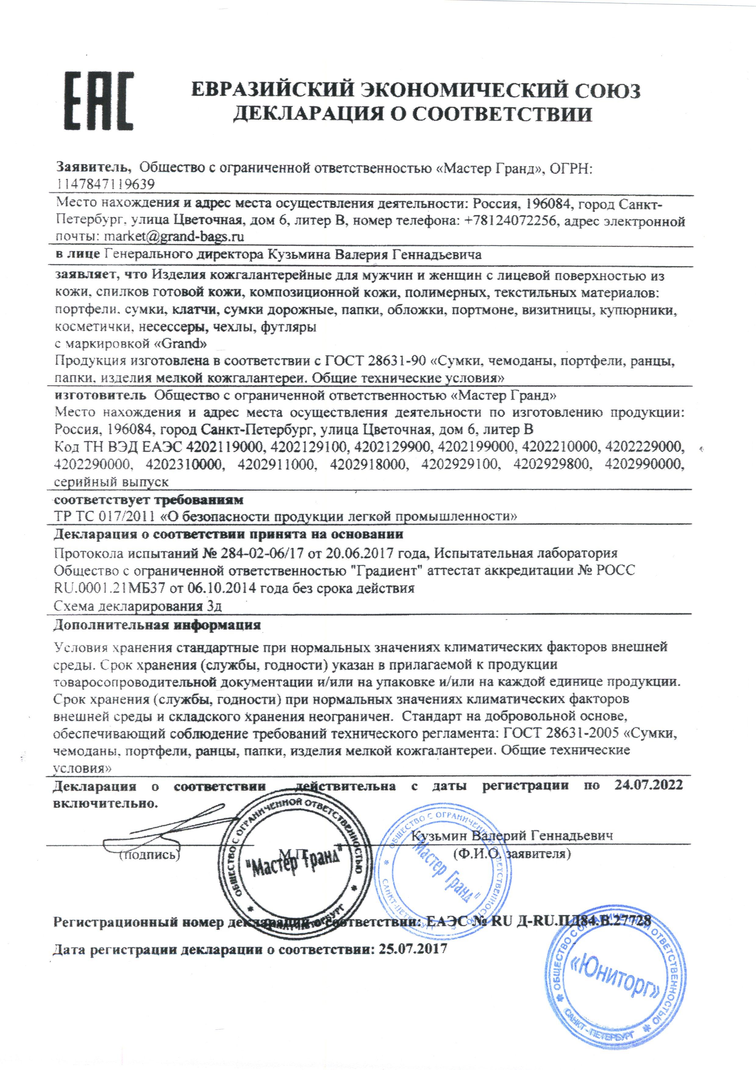 Сертификат на товар - Портфель Grand из натуральной кожи черного цвета (01-057-0713)