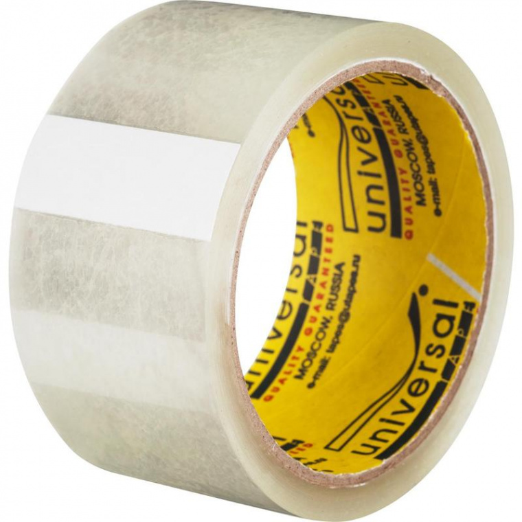Клейкая лента упаковочная Universal толщиной 40 мкм, прозрачная. Отличается высокой адгезией клея (слипанием с поверхностью), стойкостью к разрыву. Ширина ленты — 50 мм, длина намотки — 45 м. Широкая клейкая лента предназначена для упаковки легких коробок с гофрокартоном хорошего качества, не теряет свойств на открытом воздухе при температуре от 10 до 30 градусов Цельсия. Клеевой слой — акриловая эмульсия на водной основе. Материал основы: двуосноориентированный полипропилен. Вес упаковываемого груза: до 5 кг.Количество лент в упаковке: 1 штука. Количество упаковок в транспортном коробе: 36 штук.Товар продаётся поштучно.