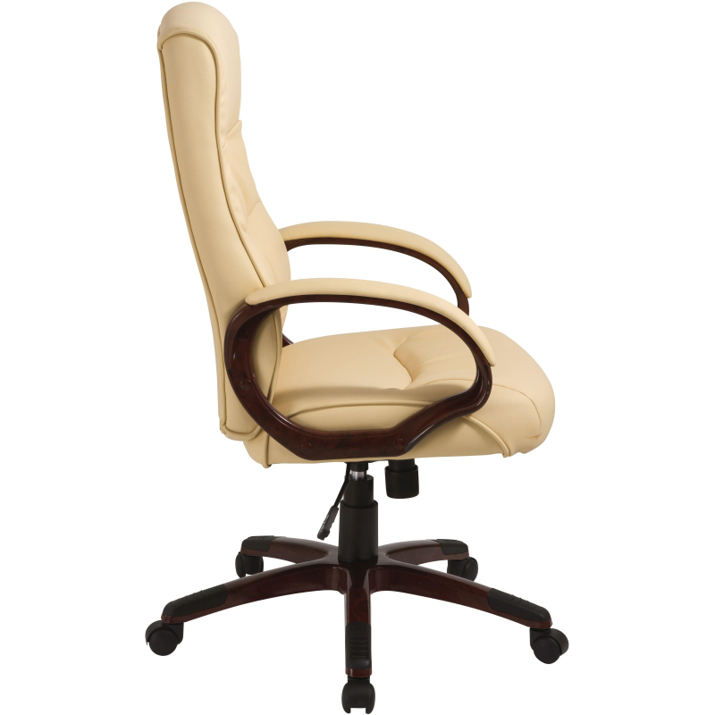 Кресло для руководителя Easy Chair 633 TR имеет обивку из рециклированной кожи бежевого цвета. Крестовина из пластика, темно-коричневого цвета. Механизм качания - Top Gun. Подлокотники изготовлены из пластика и имеют мягкие накладки в цвет обивки. Максимальная статическая нагрузка на кресло 120 кг.Изображения товаров на сайте не могут гарантировать точную цветопередачу.