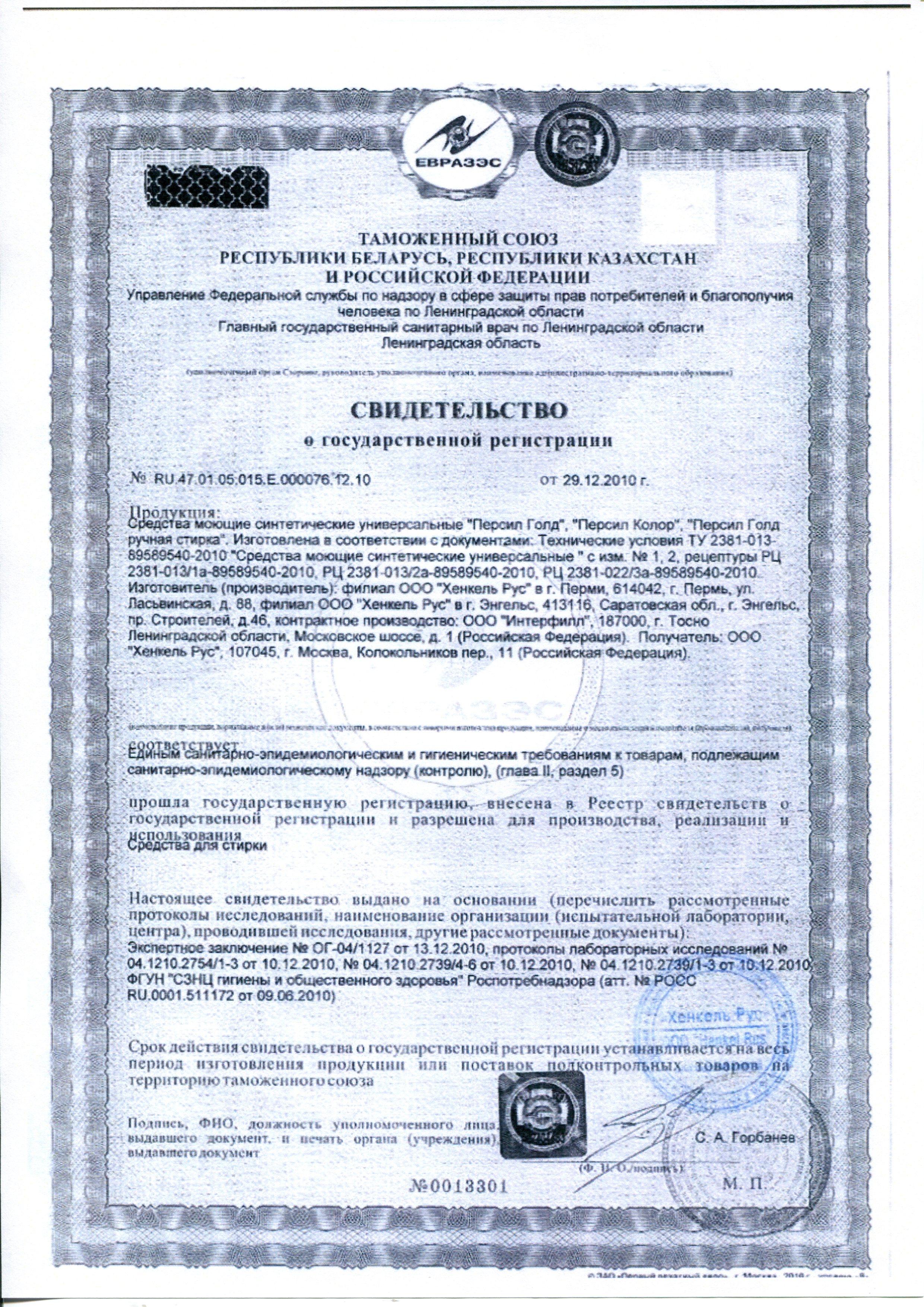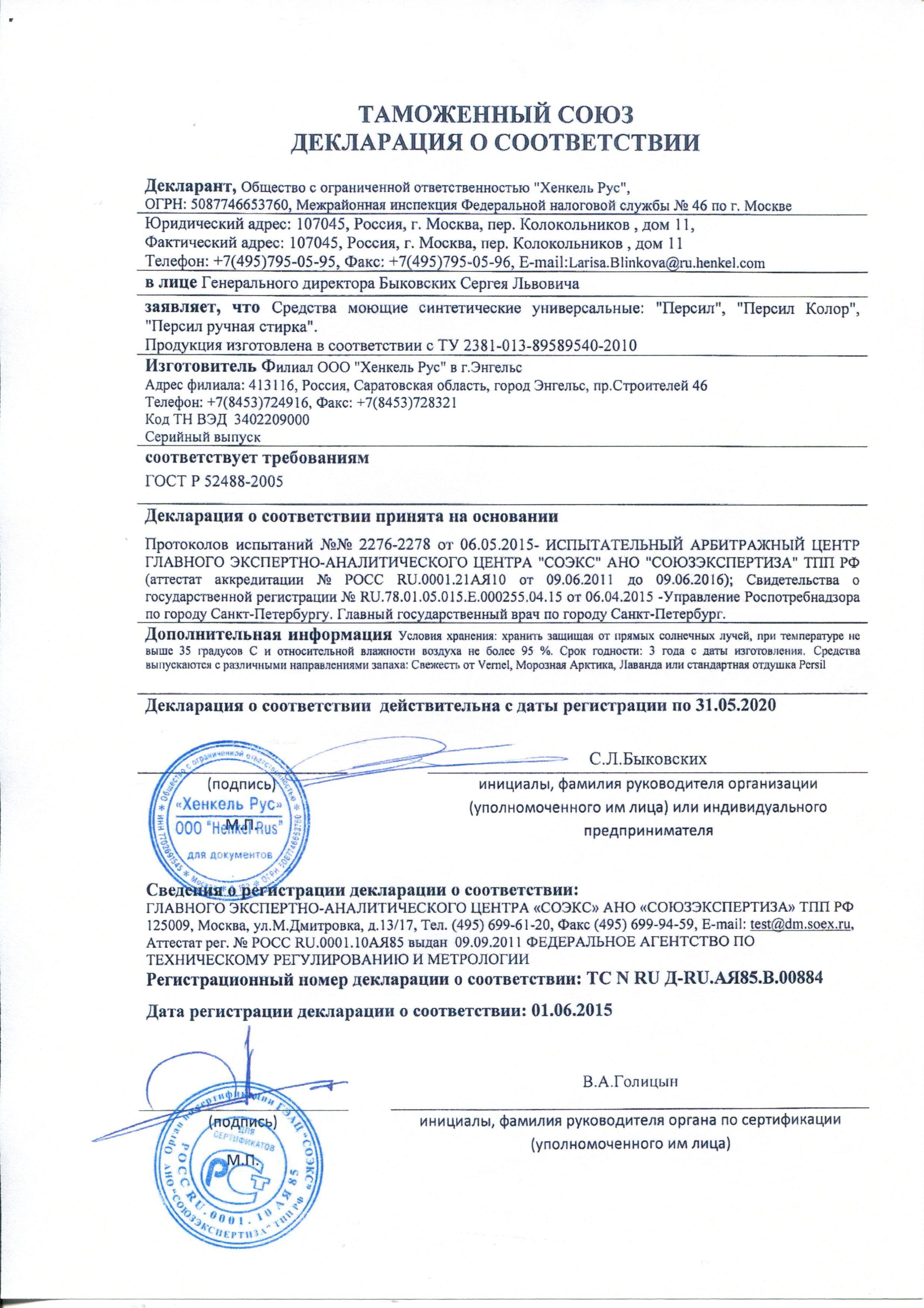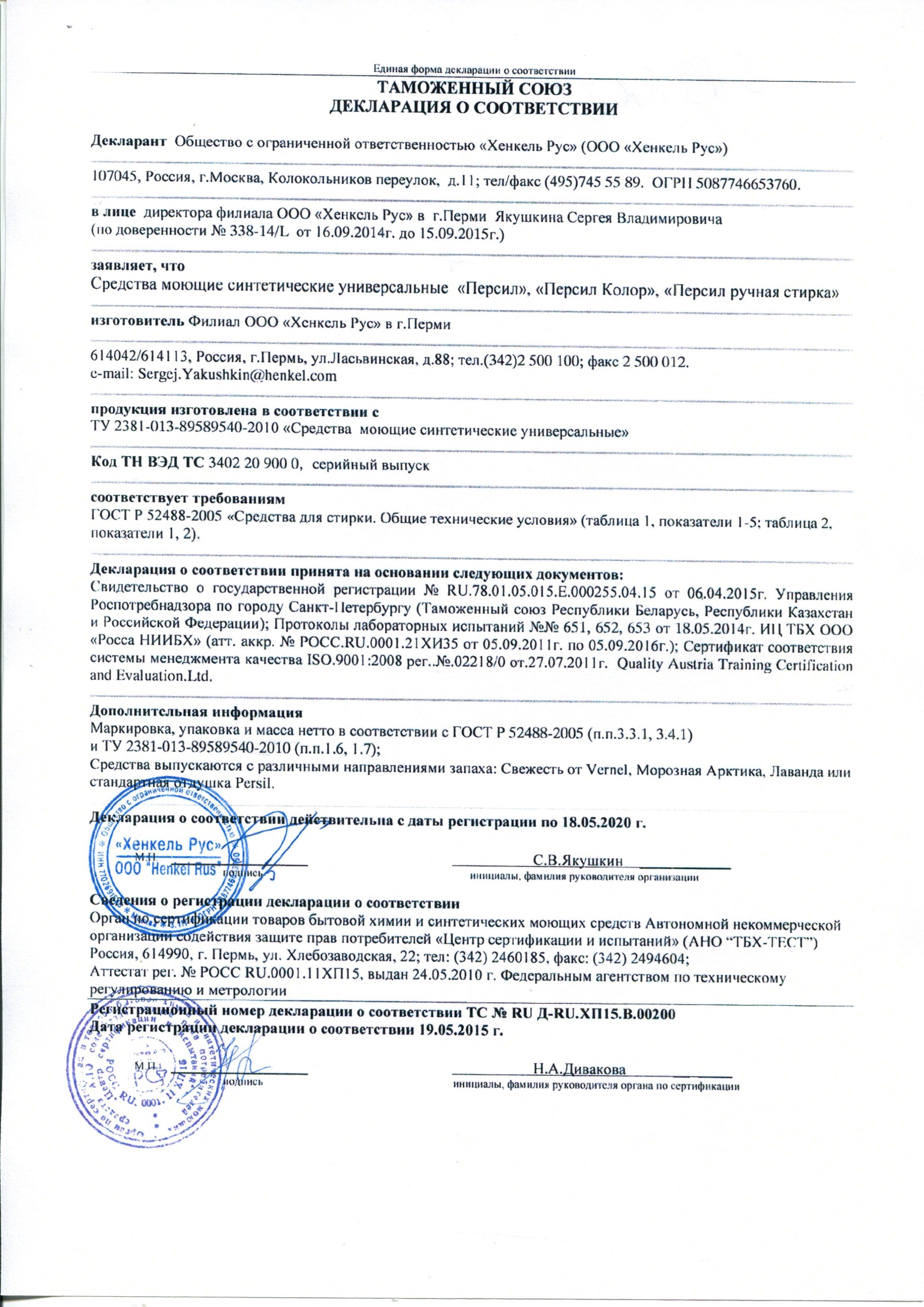 Сертификат на товар - Капсулы для стирки Persil Color 2 в 1 376 г (14 капсул в упаковке)