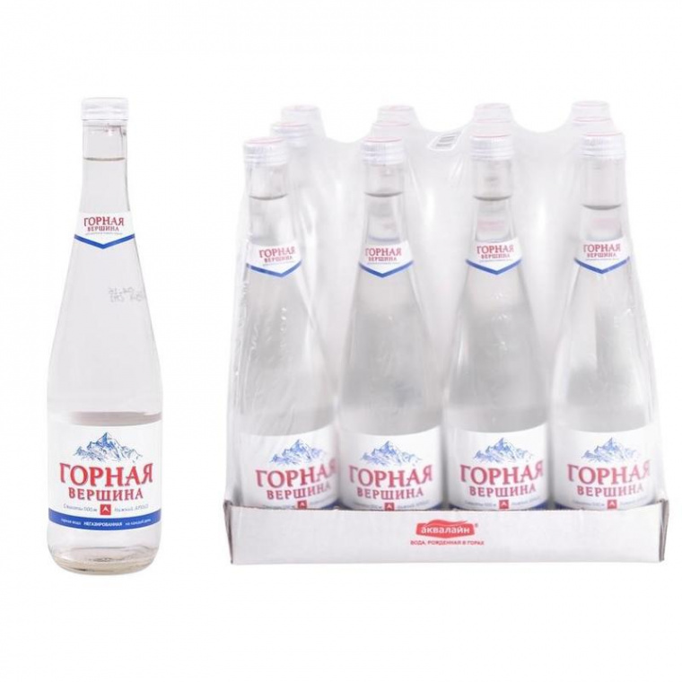 Вода минеральная Горная вершина негазированная 0.5 л (12 штук в упаковке) рекомендована для ежедневного употребления. Добывается на высоте 1100 метров над уровнем моря в высокогорном поселке Нижний Архыз Карачаево-Черкесской республики. Скважина располагается на границе Тебердинского биосферного заповедника, который находится под патронатом ЮНЕСКО. Питьевая вода «Горная вершина» одобрена Роспотребнадзором Российской Федерации для употребления детьми с первых дней жизни, подходит для приготовления сухих смесей, детского питания, для употребления в чистом виде. Содержит микро- и макроминералы, необходимые для питания организма человека.