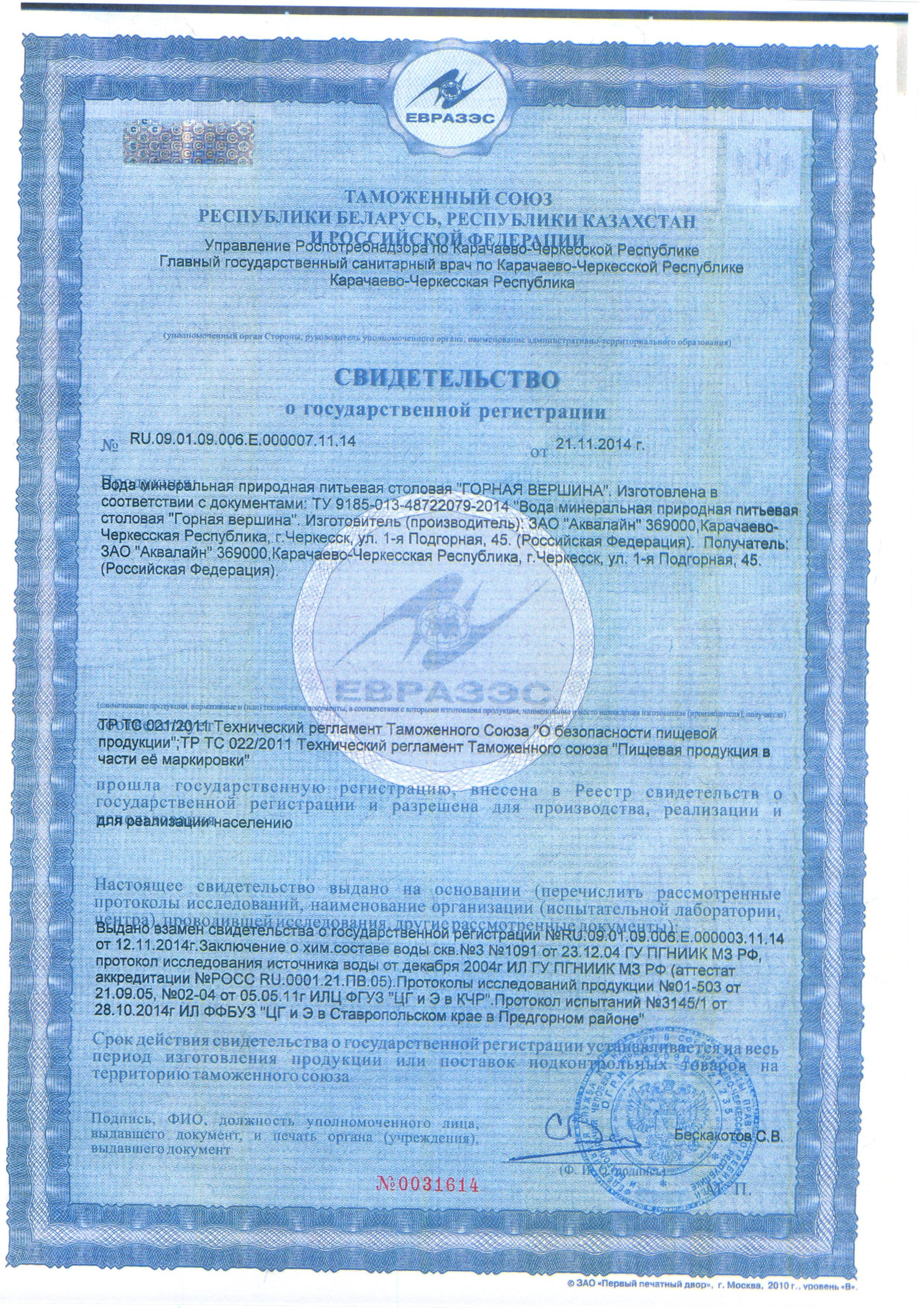 Общая минерализация — 0.1-0.35 г/л. Химический состав: гидрокарбонаты 100 — 200 мг/дм3. кальций менее 50 мг/дм3. магний менее 25 мг/дм3. натрий калий менее 50 мг/дм3. йод до 100 мкг/л. Поставляется в стеклянных бутылках, в одной упаковке 12 бутылок.