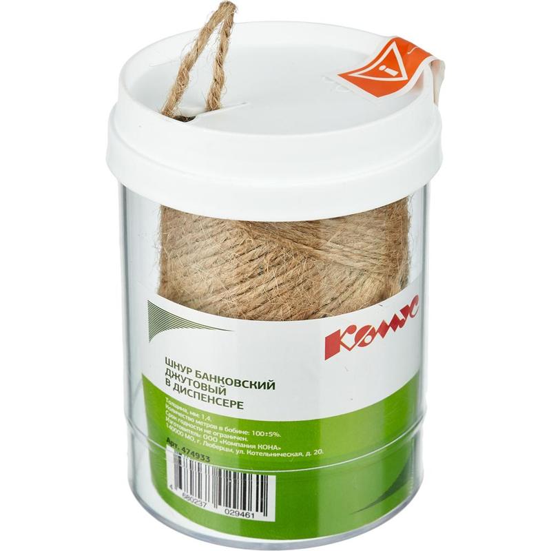 Шнур банковский джутовый полированный 100 м диаметр 1.4 мм 1200 текс (в диспенсере)