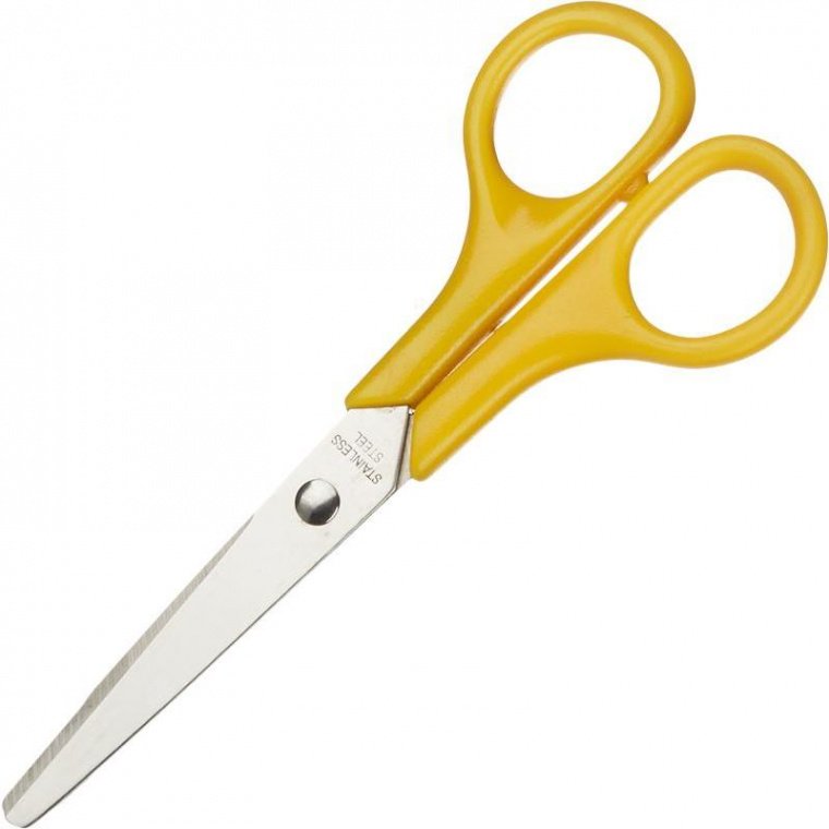 Канцелярские ножницы (офисные) Attache с тупоконечными лезвиями, выполненными из стали. Симметричные пластиковые кольца яркого желтого цвета обеспечивают комфортную работу с материалами любой плотности: бумага, картон, ткань, пленка. Двухсторонняя заточка лезвий. Длина ножниц — 13 см. Изделие представлено на картонной подложке с еврослотом.