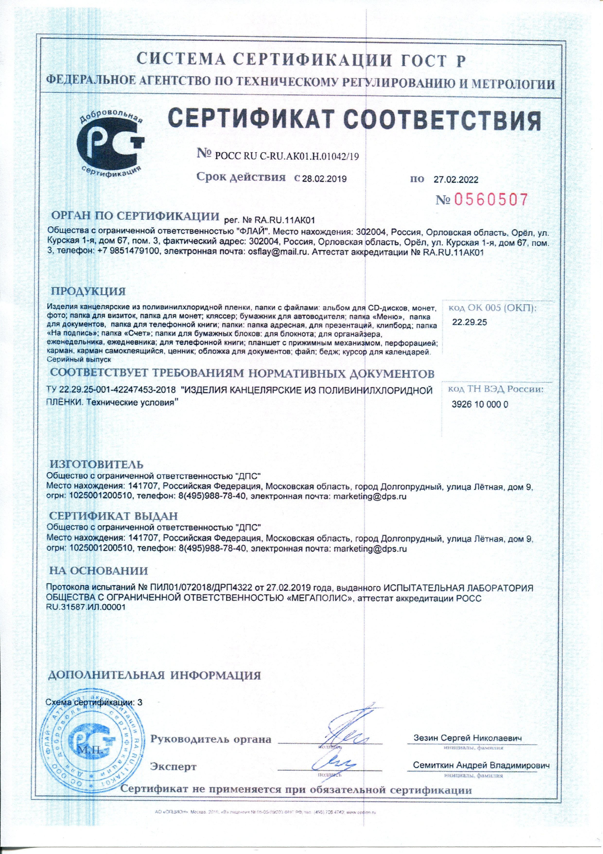 Сертификат на товар - Файл-вкладыш Attache А4 180 мкм гладкий прозрачный расширяющийся с клапаном (5 штук в упаковке)