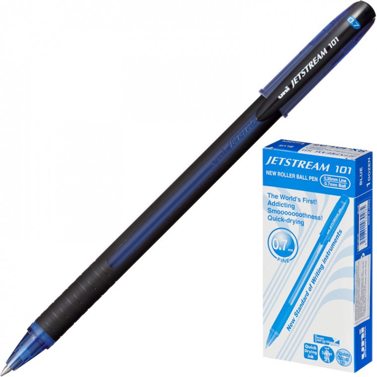 Шариковая ручка Jetstream SX-101-07 неавтоматическая, с толщиной линии письма 0,35 мм и диаметром шарика 0,7 мм. Ручка обладает уникальной гладкостью письма, а её чернила мгновенно высыхают на бумаге, линии письма четкие и заполненные. Ручка подходит как для правшей, так и для левшей. Зона захвата для пальцев выполнена из эластичной резины. Пигментные чернила устойчивы к выцветанию и смыванию водой. Корпус выполнен из полипропилена, а износостойкий пишущий узел из карбида вольфрама. Цвет чернил — синий.