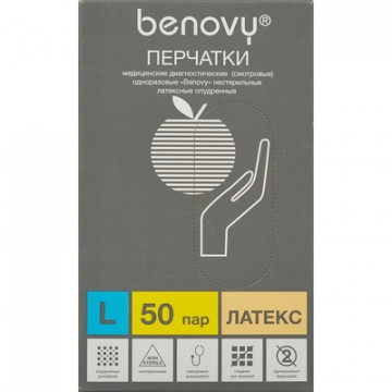 Перчатки медицинские смотровые латексные опудренные Benovy Mild Описание изделия Материал Изделие сделано из латекса натурального каучука, который может вызвать аллергическую реакцию. Упаковка товара может отличаться от представленной на фотоматериалах.