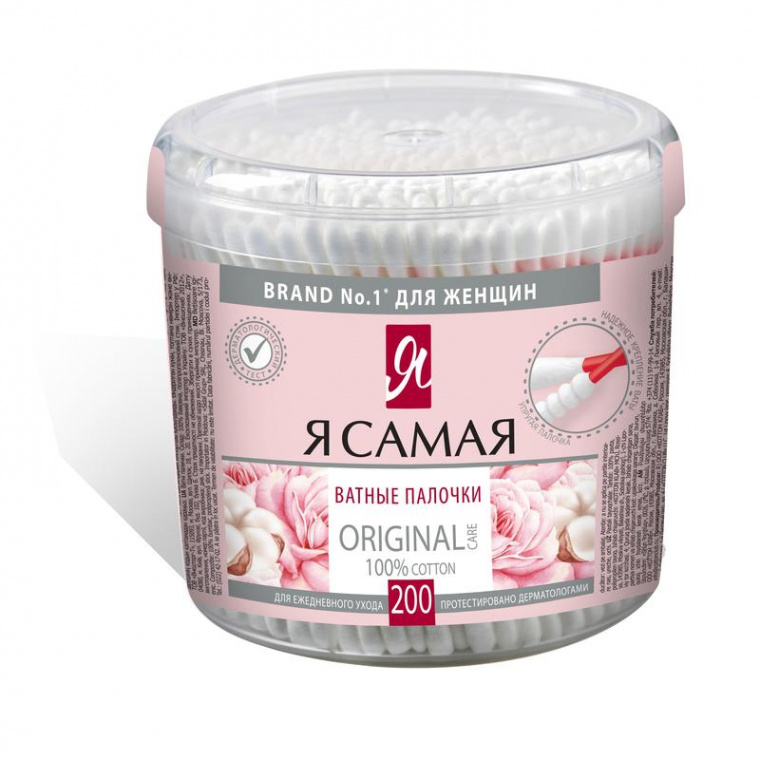 Палочки ватные «Я самая» предназначены для косметических и гигиенических целей. Для производства мягких подушечек белого цвета использовался стопроцентный хлопок. Палочки применяются для нанесения и удаления макияжа, облегчают уход за детьми. Ватные подушечки классической формы плотно намотаны на пластиковые палочки длиной 75 мм. В одном прозрачном пластиковом стакане с крышкой содержится 200 штук.