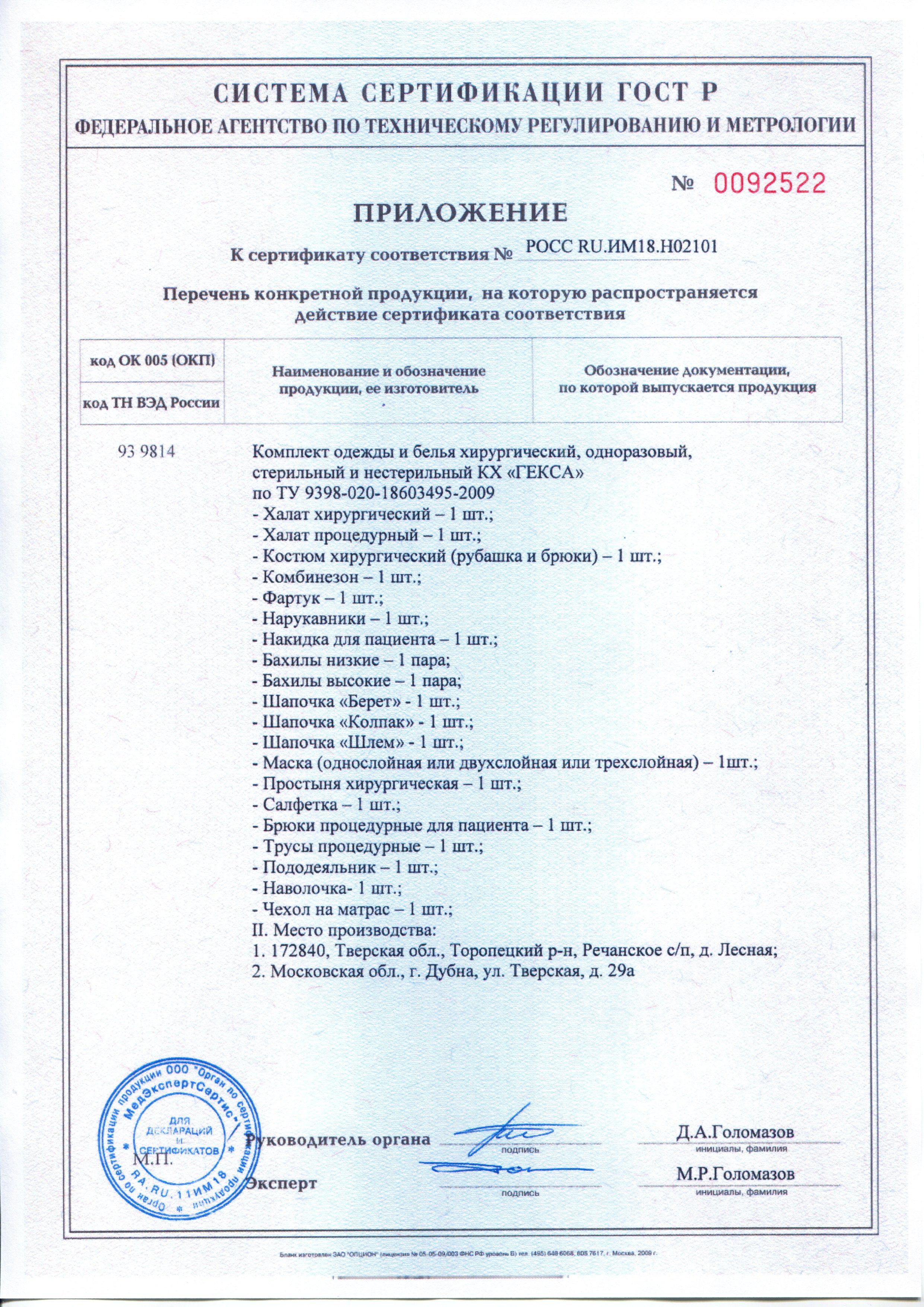 Сертификат на товар - Бахилы нестерильные плотность 42 г/кв.м (25 пар в упаковке)