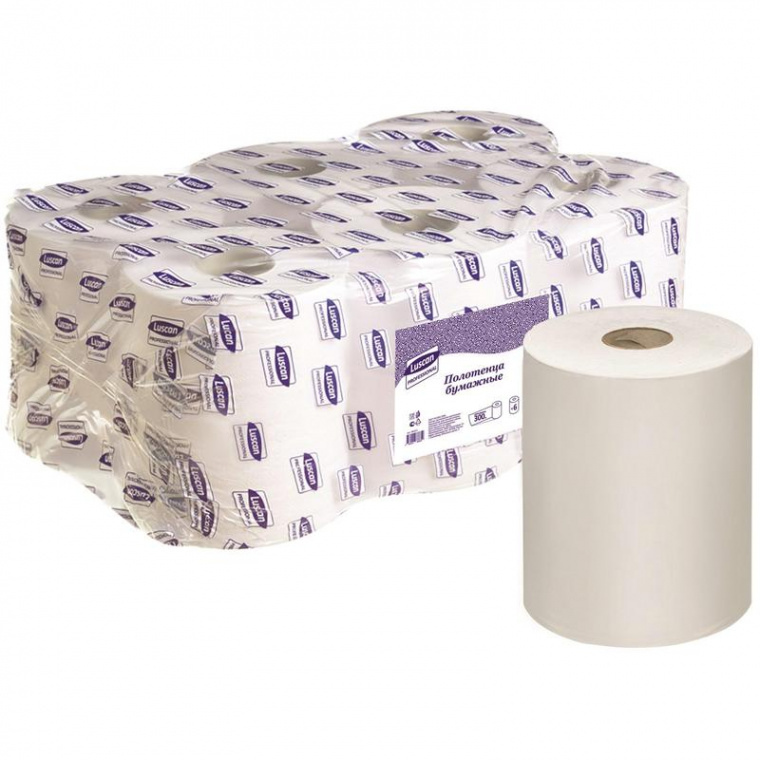 Однослойные бумажные полотенца в рулонах Luscan Proffesional белого цвета. Быстро впитывают жидкости, идеально подходят для применения на пищевом производстве и в медицине. Изготовлены из вторичного сырья.