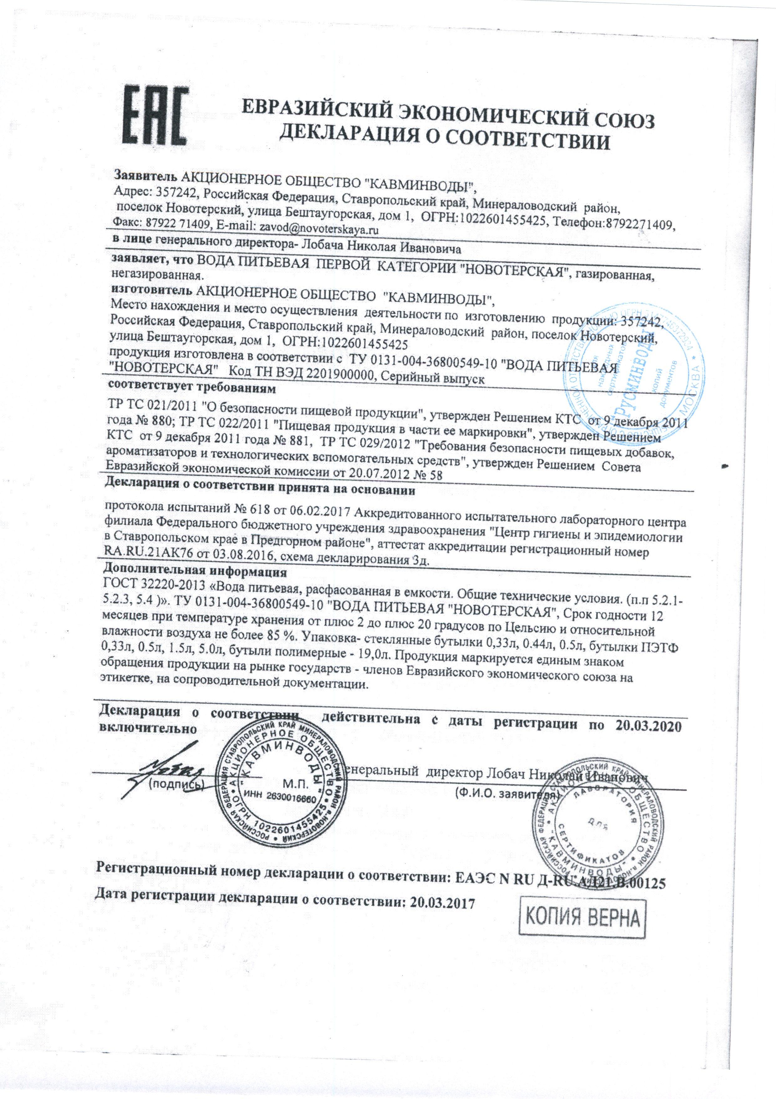Вода питьевая Новотерская газированная 0.5 л (6 штук в упаковке). Рекомендована для ежедневного употребления. Добывается в скважине номер 72 Змейкинского месторождения. Источники находятся на территории особо охраняемого эколого-курортного региона Кавказских минеральных вод.