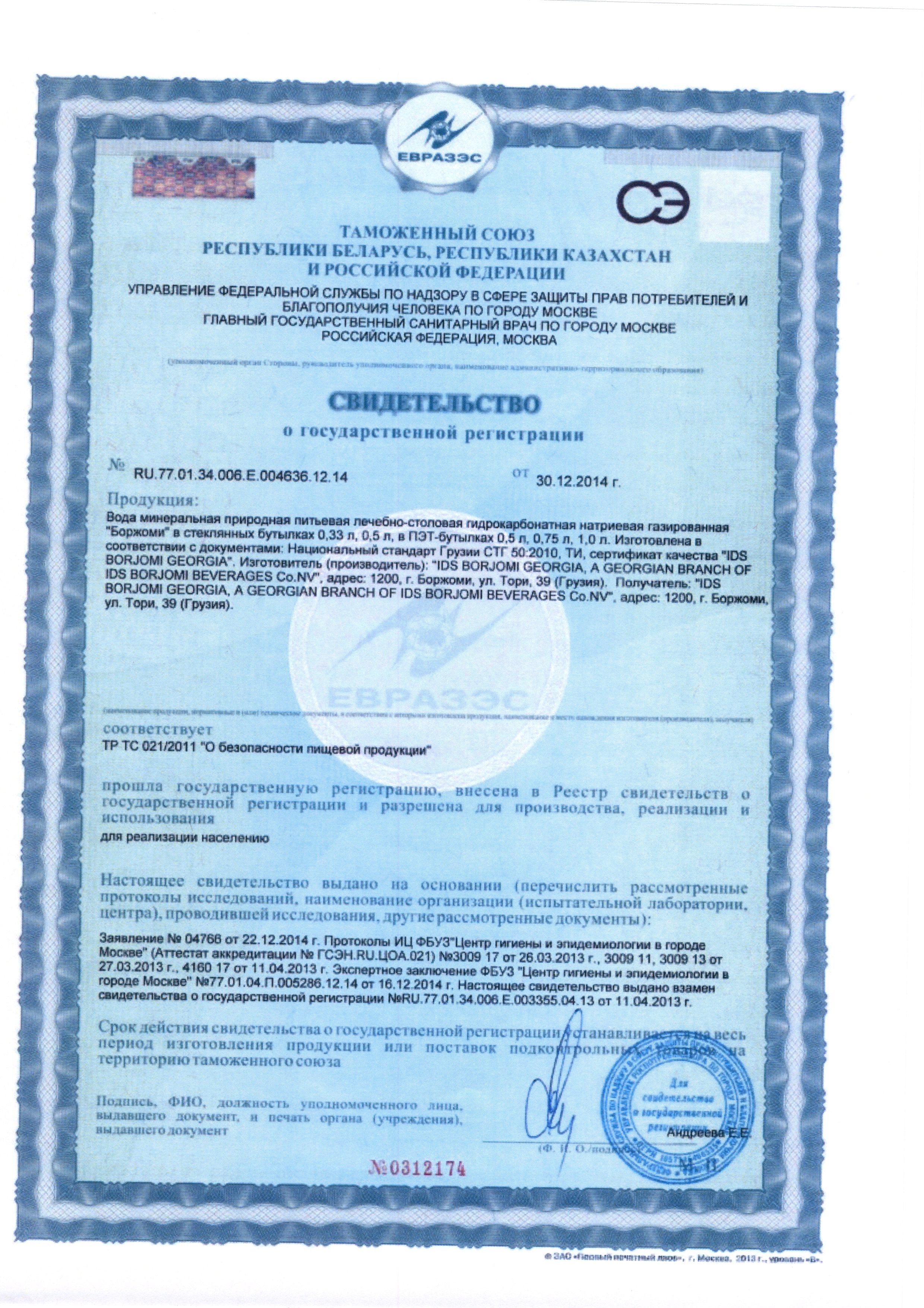 Вода Borjomi минеральная природная питьевая лечебно-столовая гидрокарбонатная натриевая газированная.