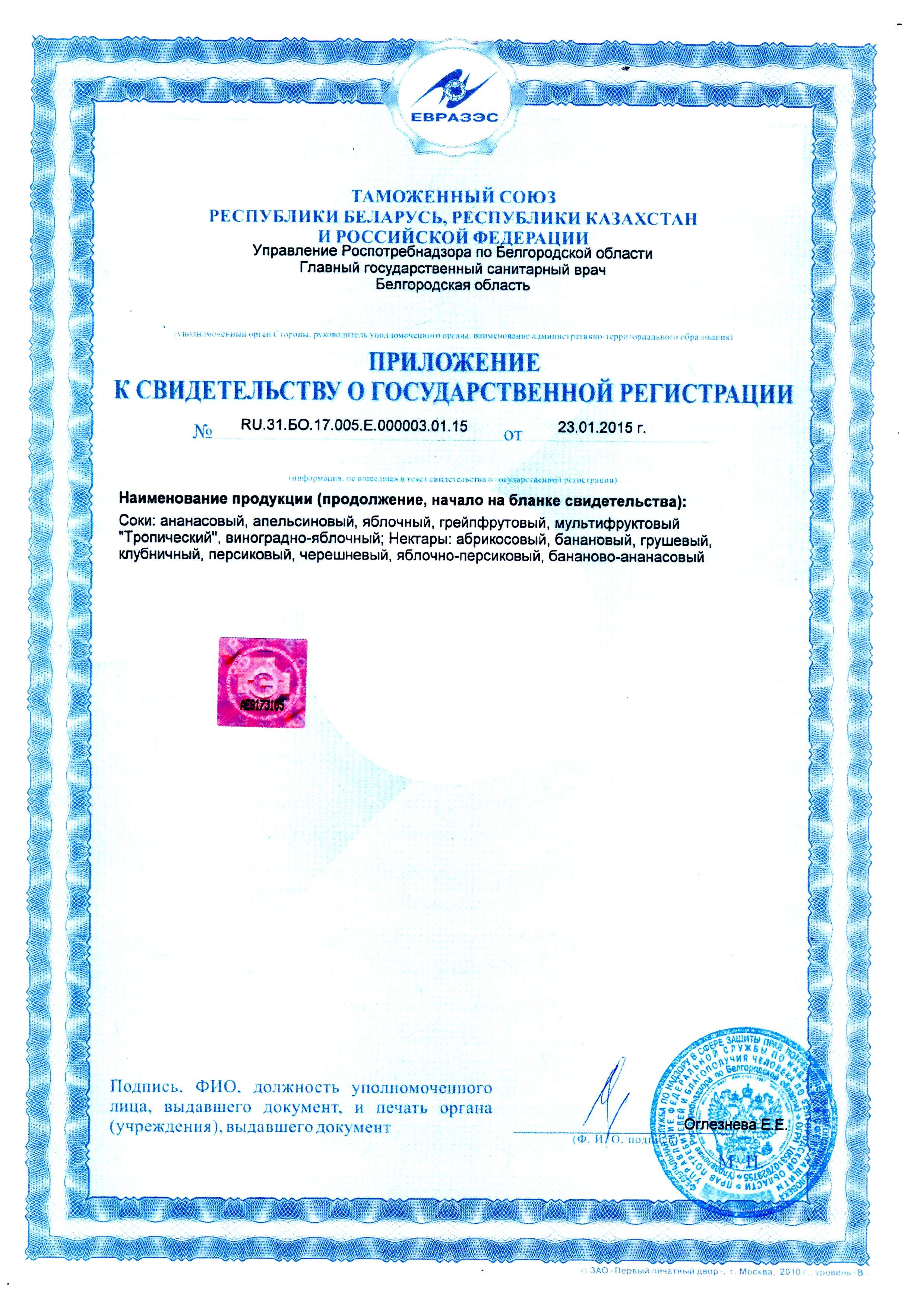 Пищевая ценность на 100 мл продукта: углеводы — 11.2 г. Энергетическая ценность на 100 мл продукта: 45 ккал. Налит в картонный пакет объемом 1 л с винтовой крышкой.