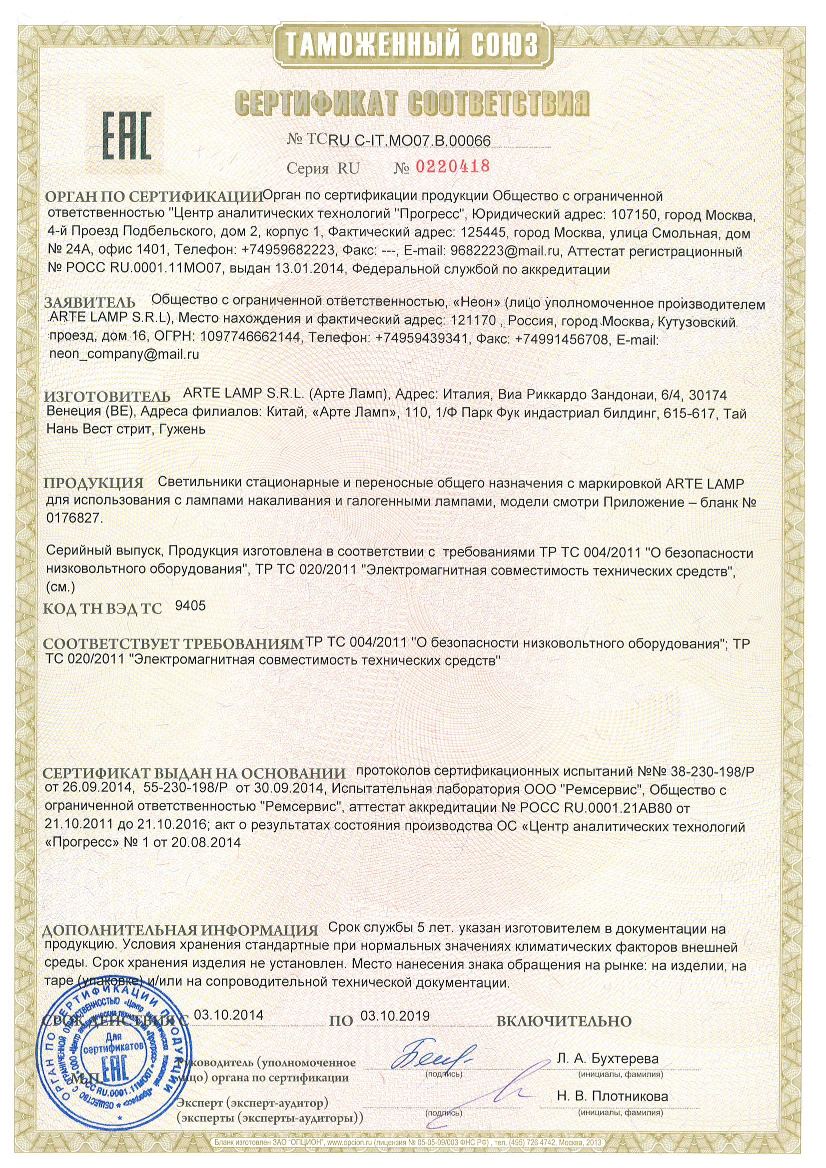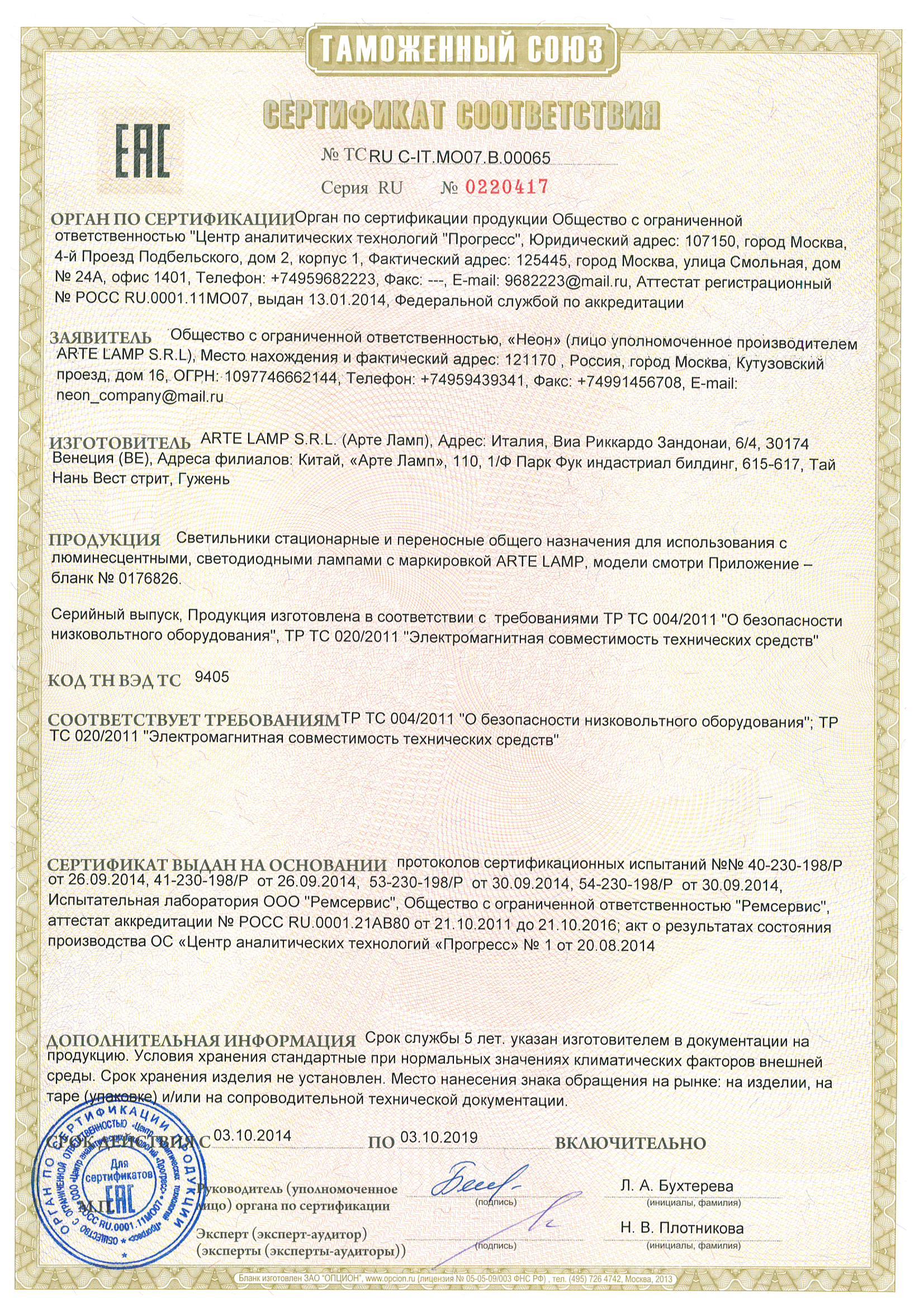 Сертификат на товар - Светильник настольный Arte Lamp A1330LT-1CC хром