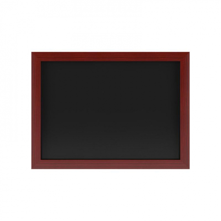 Доска магнитно-меловая. Основание ДВП, рабочая поверхность — металлический лист с лаковым покрытием черного цвета. Размер рабочей поверхности доски 500×700 мм. Улучшенная рама из деревянного багета темно-коричневого цвета шириной 45 мм. Качественная обработка дерева, без сколов и сучков. Доска предназначена для нанесения информации мелом, а также позволяет крепить бумажные листы при помощи магнитов. Надписи, нанесенные мелом, удаляются при помощи влажной салфетки. Крепление к стене открытого типа, на двух подвесах. Набор для крепления доски к стене входит в комплект. Упаковка — картонная коробка. Полочка для мела, в комплекте отсутствует.