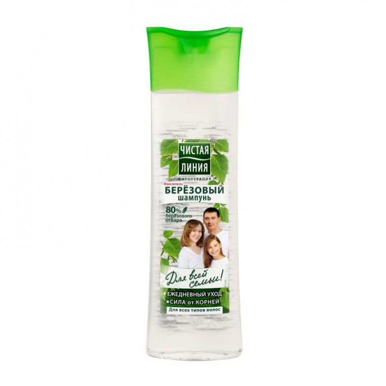 Шампунь Березовый для всей семьи включает 80% берёзового отвара. Мягкая основа на отваре не сушит кожу, не содержит красителей подходит для частого применения.