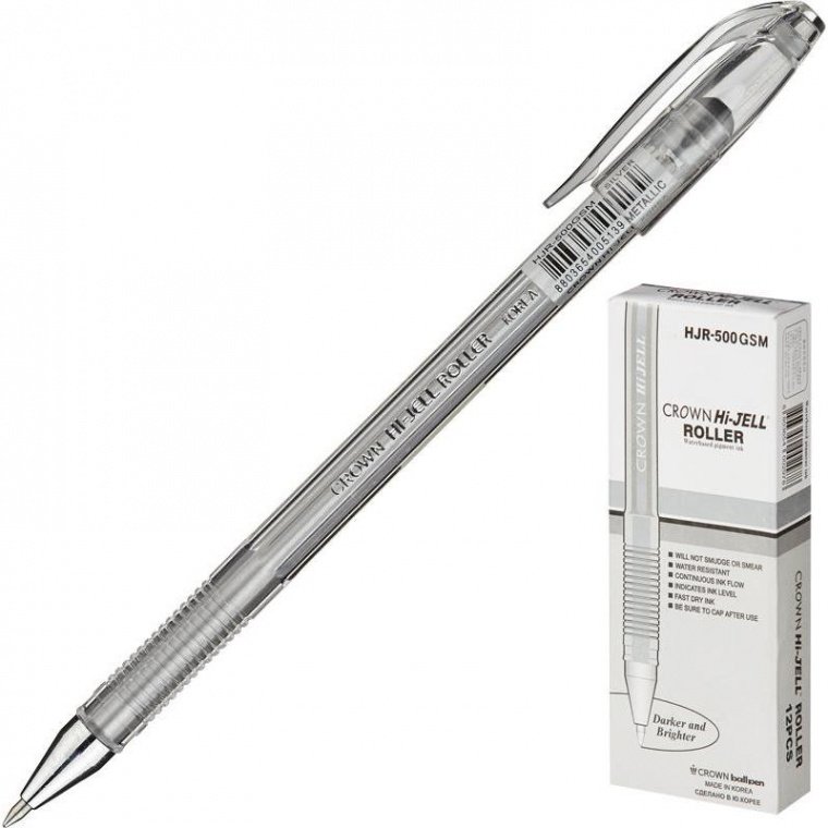 Цвет чернил — серебро металлик, диаметр пишущего узла — 0,7 мм. Упаковка: картонная коробка по 12 штук. Пиши комфортно и рисуй ярко вместе с гелевыми ручками Crown.