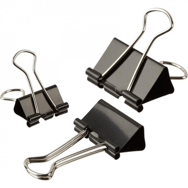 Металлические зажимы для бумаг Attache черного цвета. Размеры зажимов: (ширина х высота х глубина закладки) 32×52×16 мм, 25×41×14 мм, 19×32×10 мм. Позволяет скреплять до 80, 100 и 140 листов плотностью 80 г/кв.м, не деформируя их. Зажимы для бумаг поставляются по 10 штук в упаковке с европодвесом. В транспортном коробе 100 упаковок. В упаковке зажимов по 19 мм — 3 шт., по 25 мм — 4 шт., по 32 мм — 3 шт.
