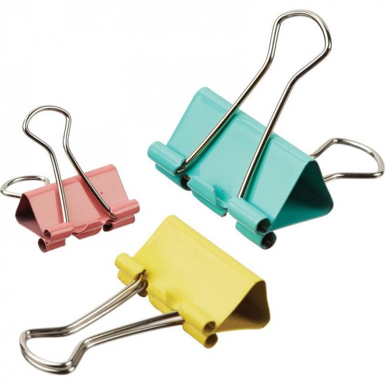 Металлические зажимы для бумаг Attache разноцветные. Размеры зажимов: (ширина х высота х глубина закладки) 32×53×15 мм, 25×42×13 мм, 19×33×9 мм. Позволяют скреплять до 80, 100 и 140 листов плотностью 80 г/кв.м, не деформируя их. Зажимы для бумаг поставляются по 12 штук в пластиковом боксе. В транспортном коробе 24 упаковки. В упаковке зажимов по 19 мм — 3 шт., по 25 мм — 6 шт., по 32 мм — 3 шт.