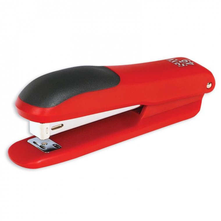 Степлер средний Sax 49 одновременно сшивает до 25 листов плотностью 80 г/кв.м. Позволяет производить сшивание открытым и закрытым способом. Глубина закладки бумаги — 65 мм (6,5 см). Рабочий механизм выполнен из металла красного цвета с черной пластиковой вставкой. В степлере используются скобы № 24/6, 26/6. Размер изделия: 161×58×42 мм Вместимость скоб — 100 штук.