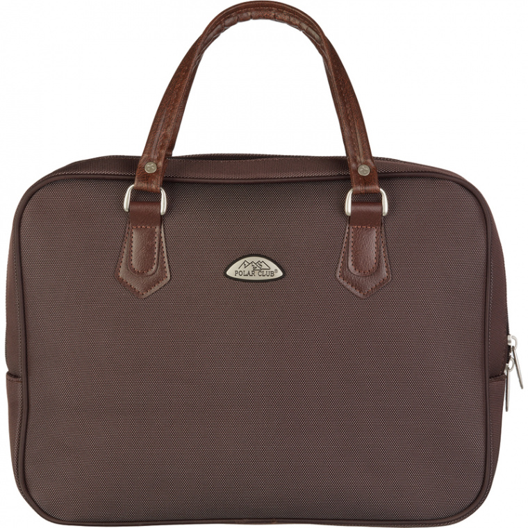 Сумка-папка Polar коричневого цвета предназначена для документов формата А4. Одно основное отделение закрывается на молнию. Внутри один открытый карман. Высота ручек — 14 см. Плечевой ремень у данной модели отсутствует.