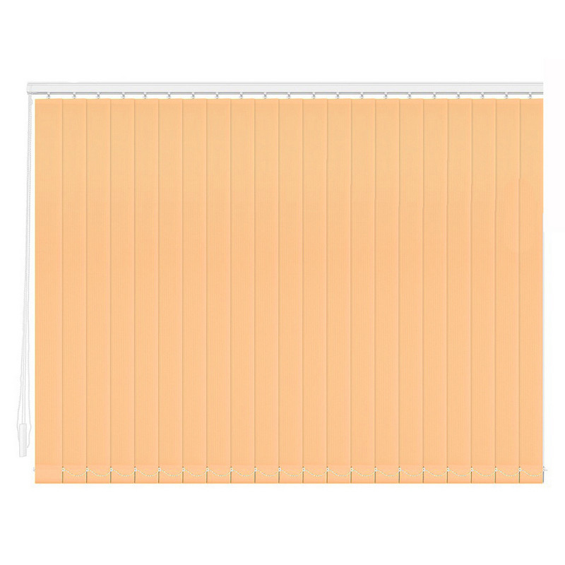 Жалюзи Лайн вариант Базовый: вертикальные тканевые жалюзи цвета абрикос. Ширина 1500 мм, высота 2000 мм (размеры указаны с учетом карнизов, зазоры снизу и с боков изделия должны составлять не менее 1 см). В комплекте идет карниз алюминиевый белый с механизмом управления, кронштейны (стена/потолок), ламели тканевые (полиэстер 89 мм).