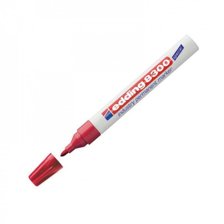 Маркер для агрессивной среды Edding E-8300 — разрабатывался как промышленный перманентный маркер для маркировки на жирной и пыльной поверхности. Маркер Edding E 8300 представляет собой отличное решение для маркировки вне помещения — там, где поверхность подвержена воздействию влаги и пыли. Маркер широко используется в нефтегазовом секторе, в металлопрокате и при изготовлении металлоконструкций, автомобильной промышленности, а также в климатических условиях с повышенной влажностью. Корпус маркера изготовлен из алюминия, пишущий узел промышленного маркера обладает дополнительно усиленным круглым пулевидным наконечником, устойчивым к истиранию. Чернила отличаются повышенной концентрацией пигментов, а так же в состав входят дополнительные компоненты, растворяющие масляную плёнку при написании по поверхности. Чернила перманентные, светостойкие, водостойкие, устойчивы к кислотам и растворителям. Инструкция по применению маркера: 1. Перед использованием хорошенько встряхнуть с закрытым колпачком. 2. Снимите колпачок, прижмите наконечник к поверхности, надавите и удерживайте пока не проступит краска. 3. Применять после того как убедитесь, что вытекает исходный цвет. Предостережение: плотно закрывайте колпачок после применения, держите маркер вдали от огня и прямых солнечных лучей.
