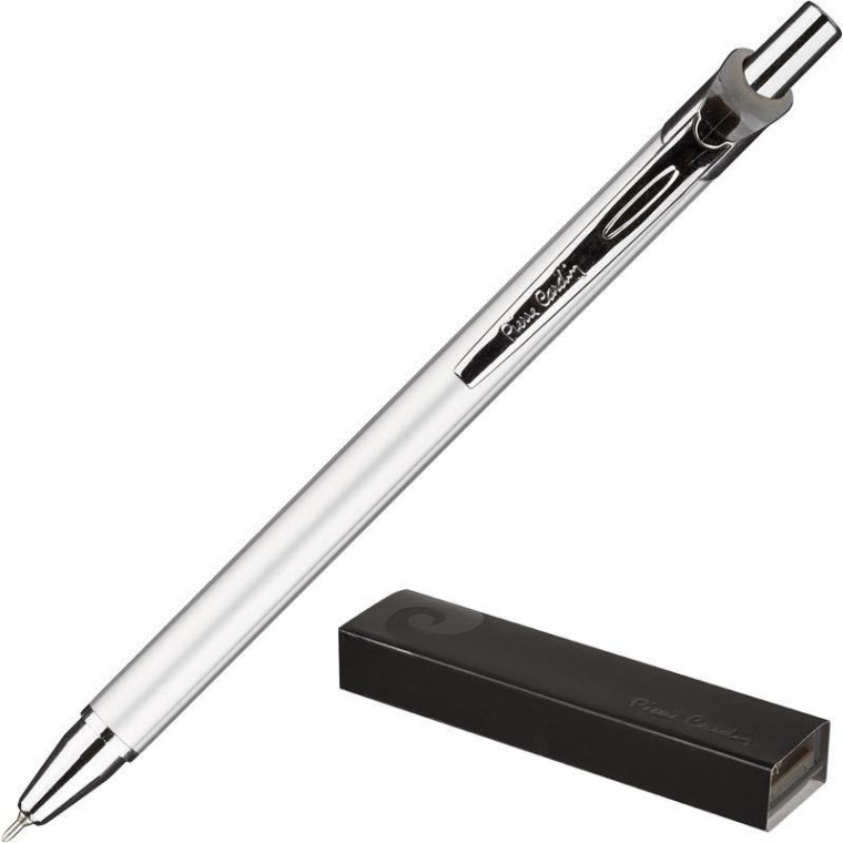 Шариковая ручка Pierre Cardin, из коллекции Actuel, в корпусе из алюминия. Детали отделки выполнены из алюминия с хромированным покрытием. Цвет корпуса — серебристый. Цвет чернил — синий. Толщина линии письма — 0,5 мм. Комплектуется пластиковым подарочным футляром с бархатистым ложементом.