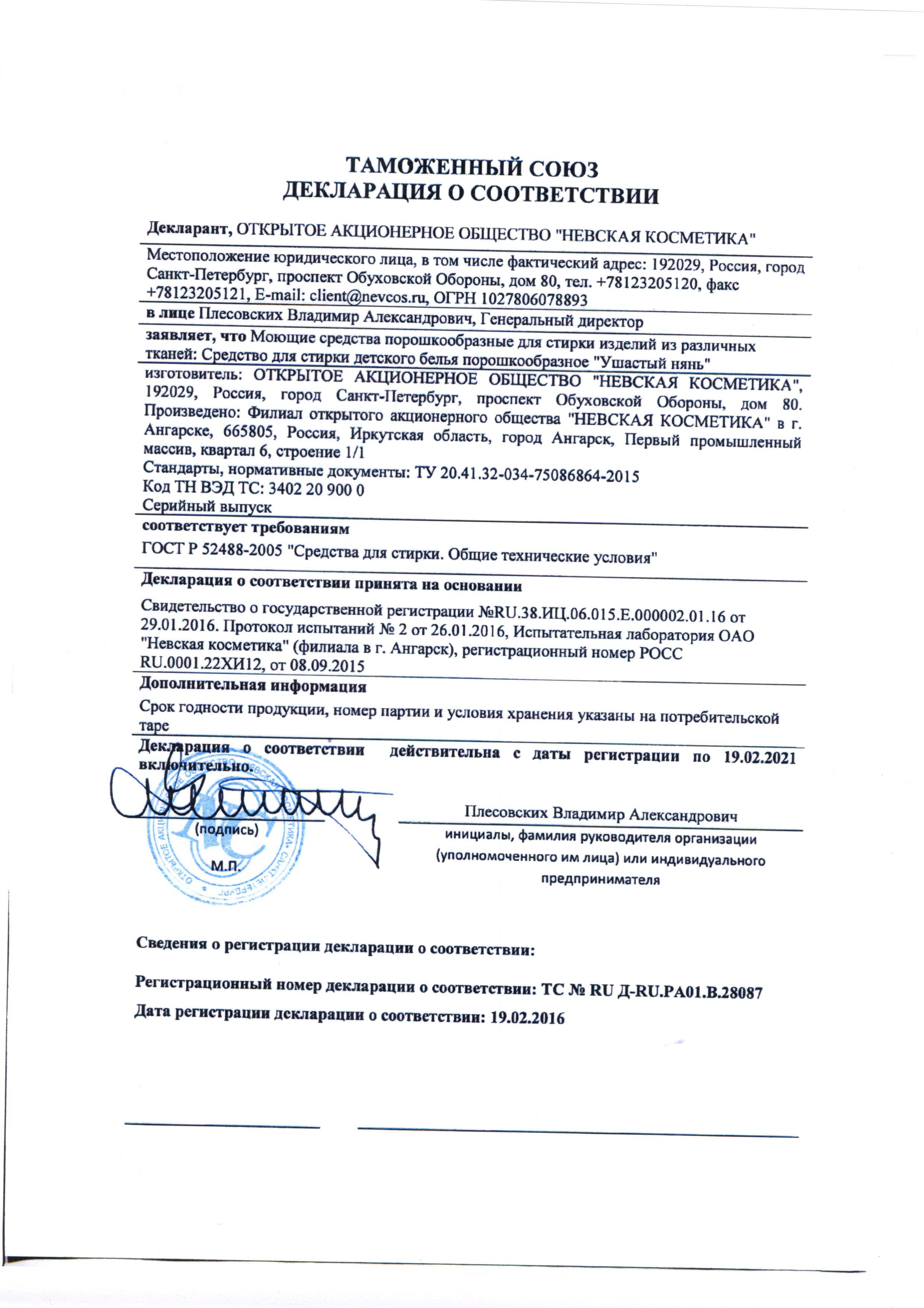 Порошок стиральный универсальный Ушастый Нянь для детского белья 400 г Назначение: Предназначено для стирки детских изделий, в том числе новорожденных, из хлопчатобумажных, льняных, синтетических тканей, а также тканей из смешанных волокон (кроме изделий из натурального шелка и шерсти), вручную, в автоматических стиральных машинах и в машинах активаторного типа.Способ применения: Ручная стирка (на 10 л воды) 30-60С: - Среднее загрязнение: в мягкой/средней жесткости воде - 100 мл (60 г), в жесткой/очень жесткой воде - 140 мл (80 г); - Сильное загрязнение: в мягкой/средней жесткости воде - 130 мл (70 г), в жесткой/очень жесткой воде - 160 мл (90 г). Автоматическая стиральная машина (на 4-5 кг белья) 30-95С: - Среднее загрязнение: в мягкой/средней жесткости воде - 180 мл (100 г), в жесткой/очень жесткой воде - 240 мл (130 г); - Сильное загрязнение: в мягкой/средней жесткости воде - 220 мл (120 г), в жесткой/очень жесткой воде - 300 мл (170 г). Меры предосторожности: Беречь от детей. При повышенной чувствительности и повреждениях кожи использовать резиновые перчатки. При попадании в глаза промыть большим количеством воды. После полного использования средства упаковку утилизировать как бытовой мусор.Состав: 15-30%: кислородсодержащий отбеливатель; 5-15%: фосфаты, анионые ПАВ;Условия хранения: Хранить в плотно закрытом флаконе, отдельно от пищевых продуктов, в недоступном для детей месте, при температуре до +35# С. Срок годности: 36 месяцев с даты изготовления.