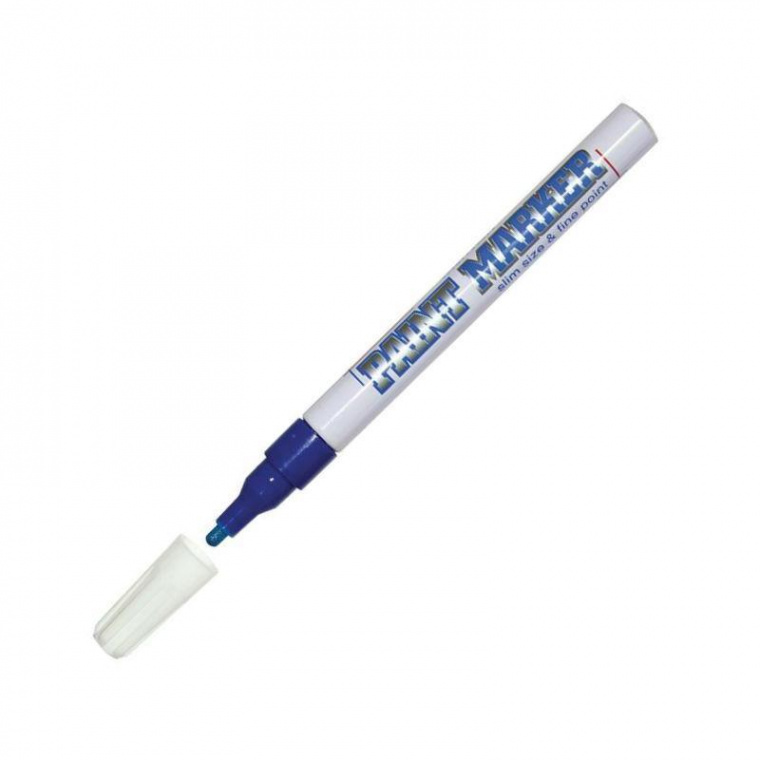 Лаковый промышленный маркер MunHwa, синий, предполагает оптимальное соотношение цены и качества, для тех, кто хочет сэкономить. Толщина линии письма 2 мм. Качество товара отвечает основным характеристикам: 1. Краска маркера универсальна и предназначена практически для любого типа поверхности: бумаге, дереву, пластику, металлу, натуральному и искусственному камню, стеклу. Краска морозоустойчива, не выгорает на солнце. Может применяться как на горячей (до 130 градусов по Цельсию) так и на загрязненной, в том числе и маслами, поверхности. 2. Благодаря дозированной подаче краски при помощи клапанного пишущего узла исключаются растекания, неровности линии и преждевременное пересыхание. 3. Богатая цветовая палитра краски на нитрооснове. Инструкция по применению маркера: 1. Перед использованием хорошенько встряхнуть с закрытым колпачком для эффективной выдачи пигмента. 2. Снимите колпачок, прижмите наконечник к поверхности, надавите и удерживайте, пока не проступит краска. 3. Применять после того как убедитесь, что вытекает исходный цвет. Предостережения: плотно закрывайте колпачок после применения, держать маркер вдали от огня, прямые солнечные лучи вызывают обесцвечивание.