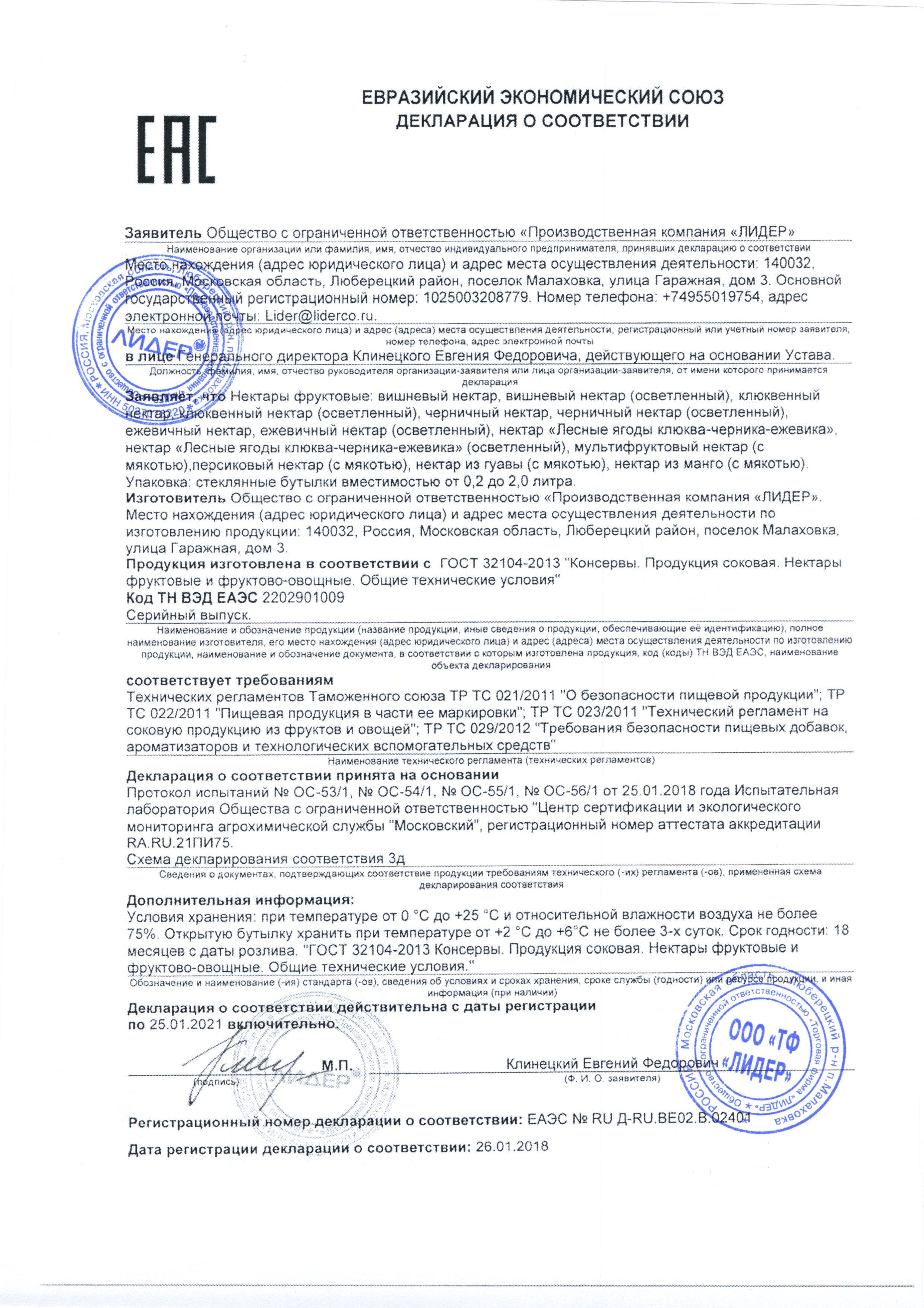Состав: соки: яблочный, ананасовый, апельсиновый, мандариновый, лимонный, маракуйи, пюре: гуавы, киви, банана (изготовлены из концентрированных соков и пюре), сахар, вода питьевая. Минимальная объемная доля сока и пюре — 60%. Допускается незначительное расслаивание и наличие осадка частиц мякоти. Перед употреблением взбалтывать! Тип упаковки: стеклянная бутылка.