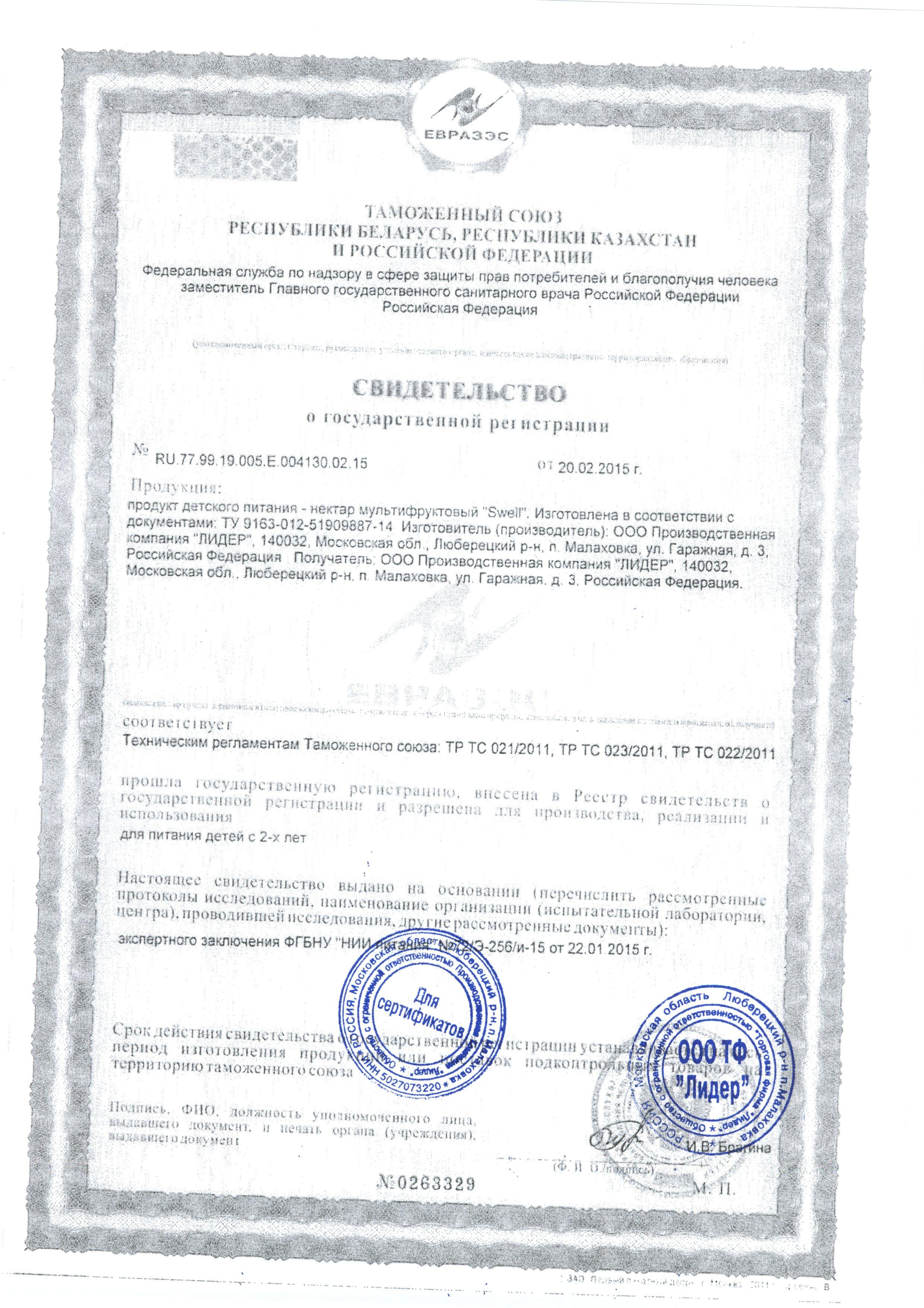 Нектар Swell мультифрукт 0.25 л (8 штук в упаковке). Для детского питания. С мякотью. Для питания детей с 2-х лет.