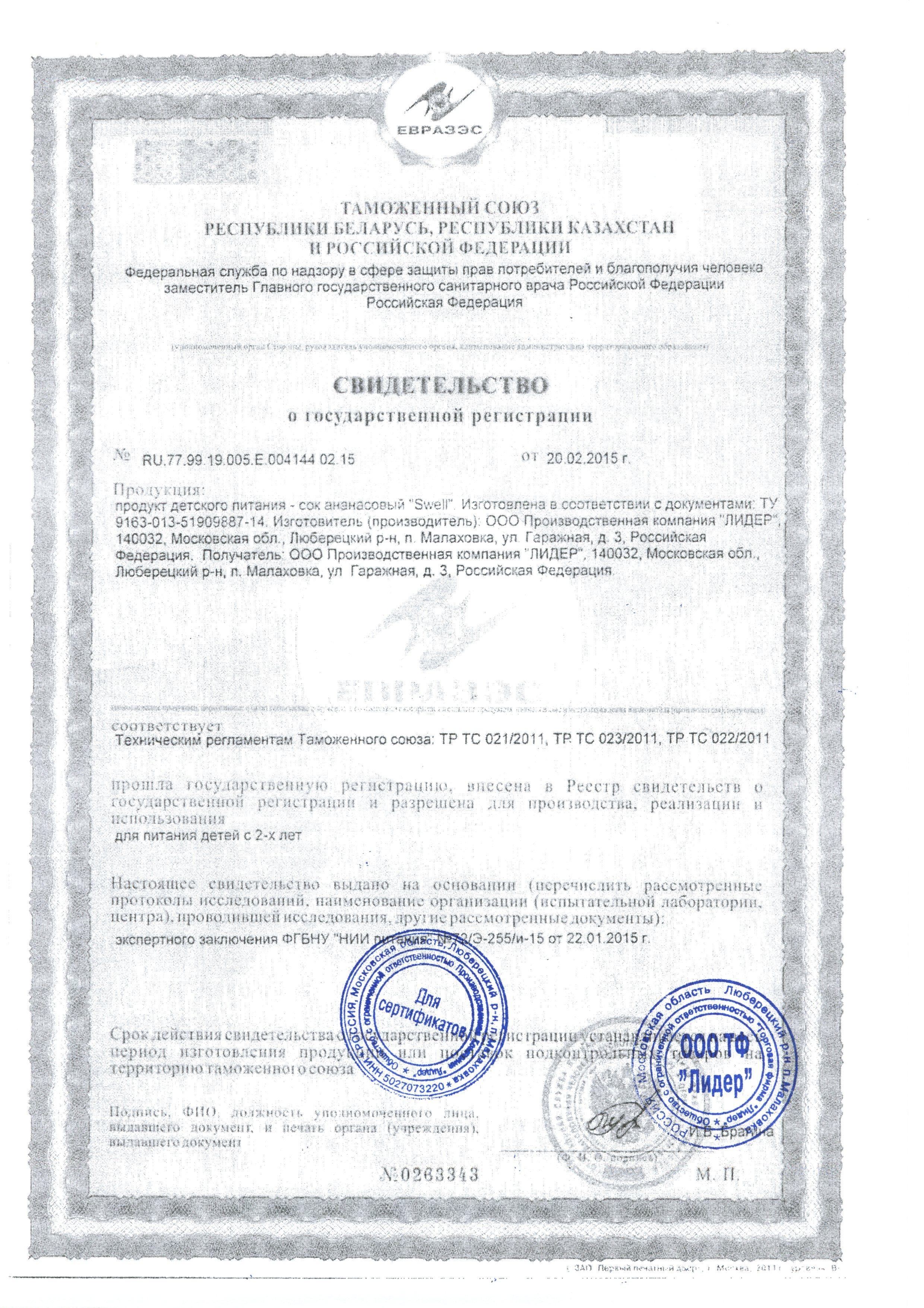 Сок Swell ананас 0.25 л (8 штук в упаковке). Для детского питания. С мякотью. Восстановленный. Для питания детей с 2-х лет.