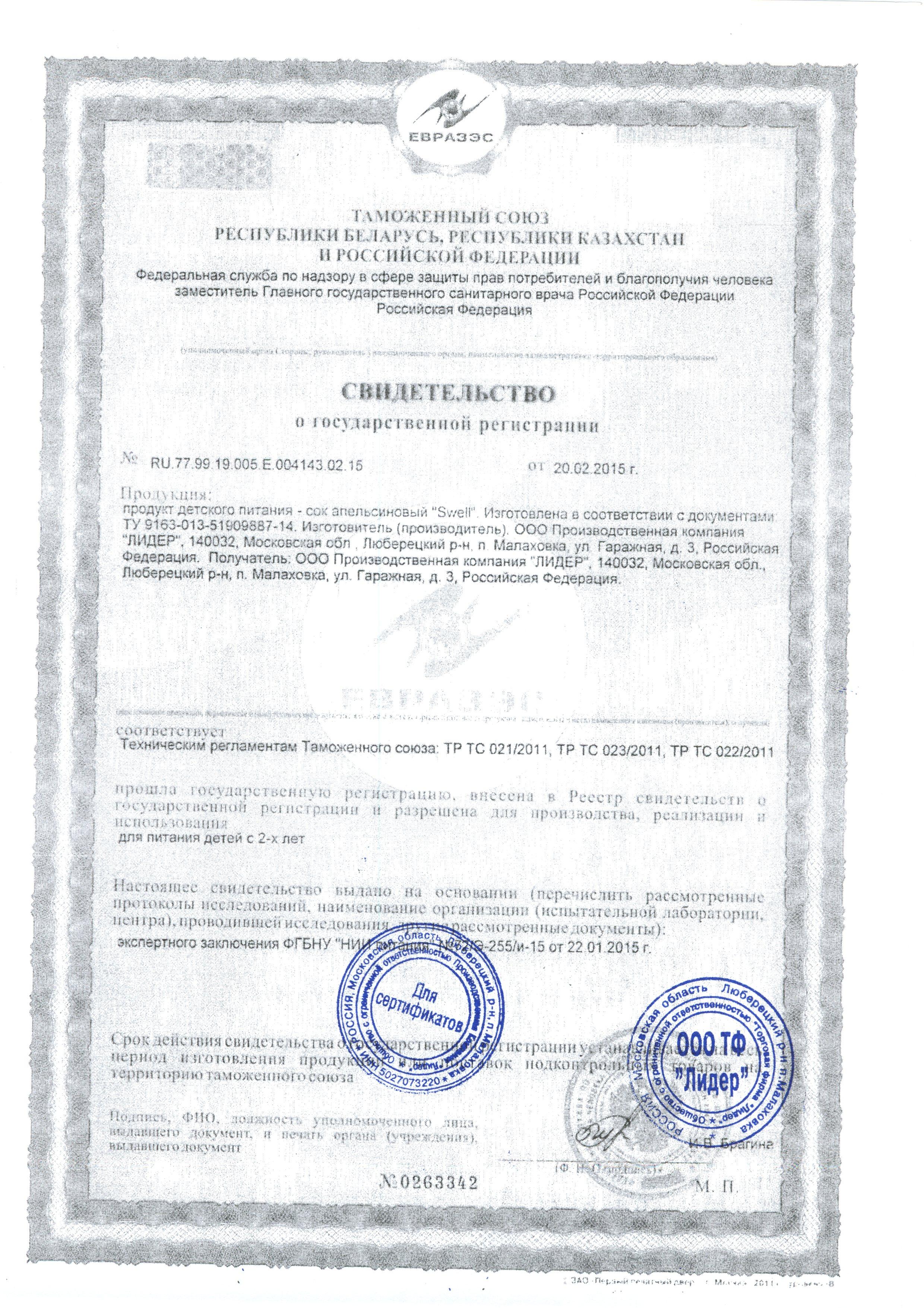 Сок Swell апельсин 0.25 л (8 штук в упаковке). Для детского питания. С мякотью. Восстановленный. Для питания детей с 2-х лет.