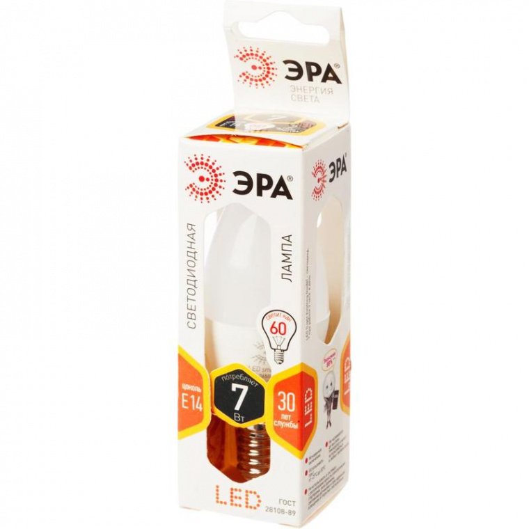 Светодиодная лампа Эра 7W E14 2700k излучает приятный теплый белый свет. Этот теплый белый свет идеален для гостиной, ванной, спальни. Модель создает световой поток в 600 люмен, что является достаточным освещением в указанным помещениях. Лампа светодиодная Эра обладает классическим цоколем Е14 и имеет форму свечи. Благодаря этому обстоятельству, а также она оптимально подходит для использования в изящных люстрах, светильниках и бра. Лампа создает мягкий рассеивающий свет, что позволяет создать уют в спальнях и местах отдыха. Такой цветовой диапазон похож на мягкий свет мягкого утреннего или вечернего солнца. Также эти оттенки хороши для применения в вечернее время из-за их успокаивающего эффекта. Расслабляющий эффект пригодится в кафе, барах и ресторанах, где посетители будут чувствовать себя спокойно, или дома, для создания уютной атмосферы. Еще такие лампы часто используются в салонах мебели и освещении витрин в зимнее время. Не мерцает (полноценный драйвер). Светодиодная лампа Эра является перспективным источником света. Основным преимуществом данного источника света является длительный срок службы (30000 часов) и очень низкое энергопотребление (экономия энергии в 8 раз). Однако стоит учитывать, что этот показатель указан для безостановочной работы, а лампа используется всего несколько часов в сутки. Это значит, что указанные 30 000 часов могут «растянуть» работу устройства на 30 лет. Данная лампа обладает матовой белой колбой, а диапазон рабочего напряжения колеблется от 170 до 265 вольт.