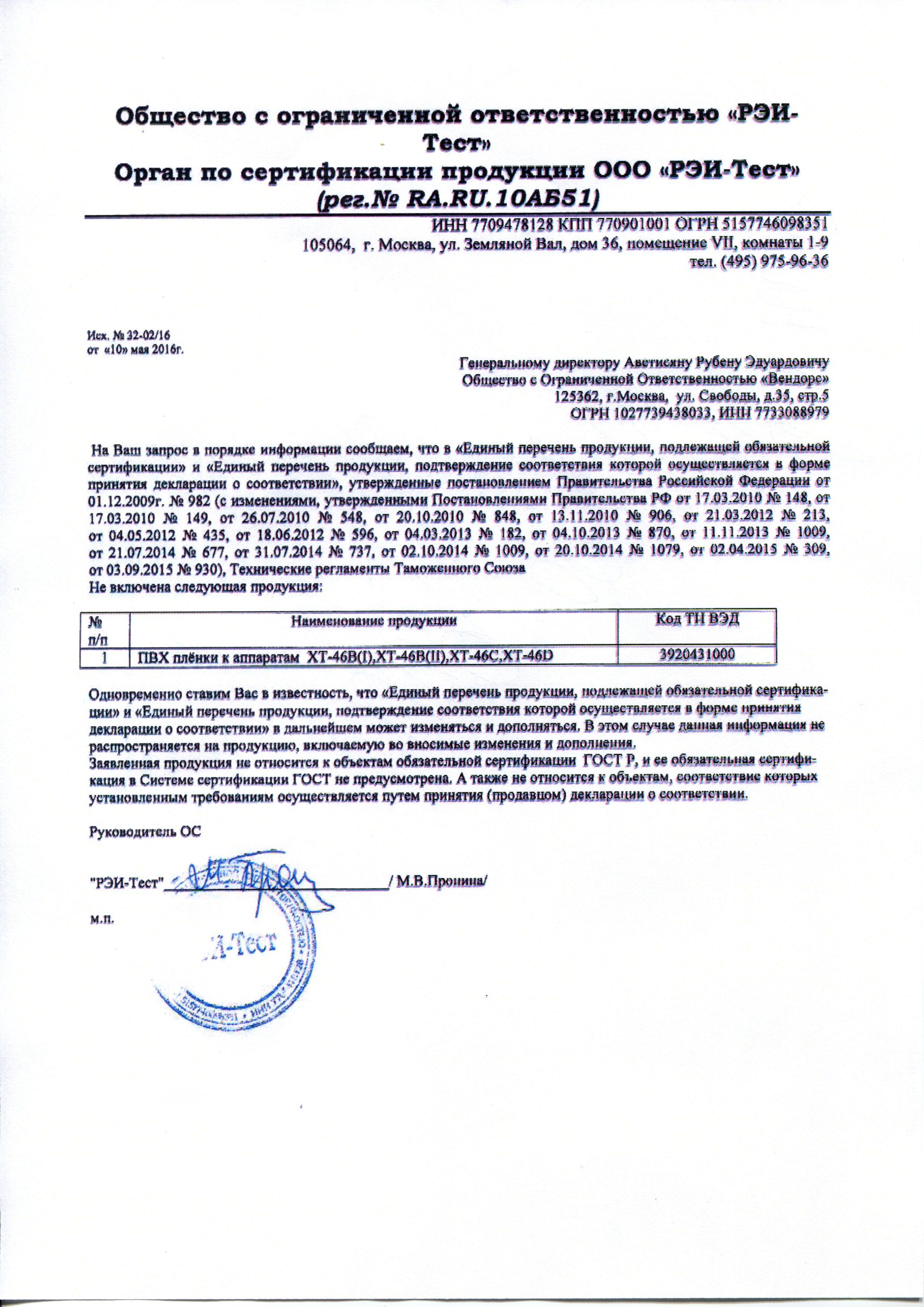 Сертификат на товар - Пленка ПВХ для аппаратов для надевания бахил Boot-Pack рулон 1000 штук