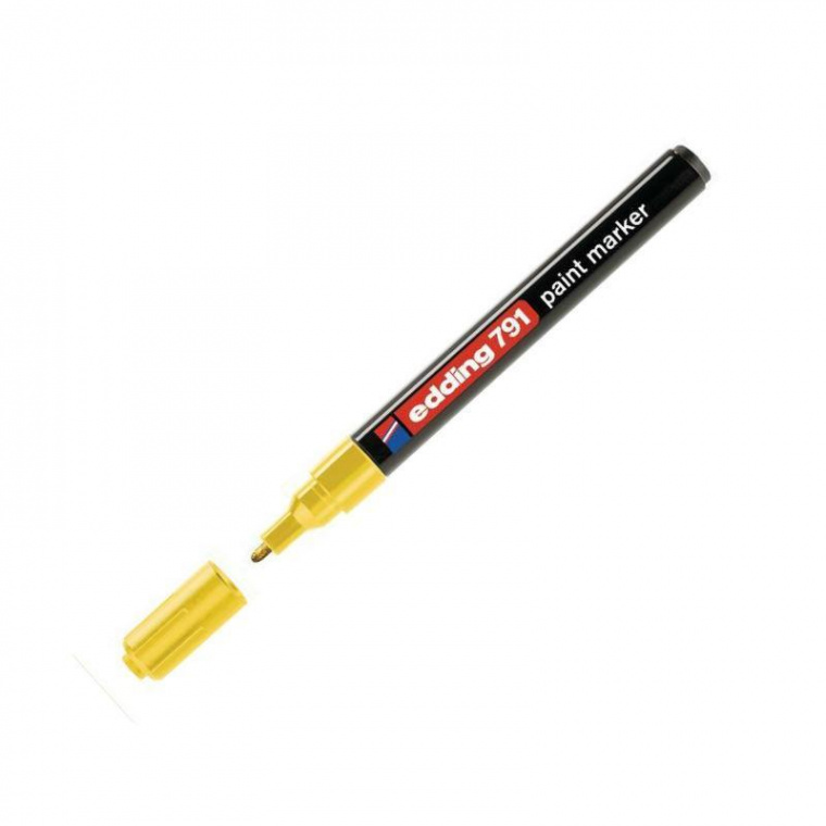 Экономичный универсальный маркер Edding 791 используется для промышленной непрозрачной маркировки практически всех материалов, например, стекла, пластика, дерева или металла. Может применяется для письма на жирных, пыльных, грязных поверхностях. Лаковый маркер устойчив к кислотам, растворителям, механическому истиранию, свету. Высококонцентрированный пигмент хорошо ложится на гладкие и шероховатые поверхности. Специальные добавки, введенные в состав маркера Edding E 791 растворяют, масляную пленку на поверхности письма. Непрозрачные лаковые чернила позволяют делать хорошо заметные надписи густым плотным слоем даже на темных поверхностях. Корпус промышленного маркера изготовлен из экономичного пластика. Маркер Edding E 791 имеет упроченный круглый (пулевидный) наконечник. Наконечник маркера может быть заменен по мере истирания. Благодаря тонкому наконечнику маркером может наносится маркировка на небольшие элементы и поверхности. Толщина линии — 1-2 мм. Поток чернил регулируется клапаном. Чернила маркера с лакирующим эффектом на основе нитрокраски. Водостойкий, быстро сохнет. Термостойкость надписи до 1000 градусов по Цельсию. Надписи цветами 06-010, 049, 054 также хорошо видимы до 1000 градусов по Цельсию. Маркировка, выполненная маркерами других цветов термостойка до 400 градусов по Цельсию. Маркер Edding E 791 хорошо зарекомендовал себя в работе при перепадах температур от −15 до 30. Промышленный лаковый маркер Edding Е-791 универсален. Используется, например, при нанесении меток на разнородные материалы. При маркировке изделий из резины, пластика, стекла, металла, кабеля, проводов, при нанесении маркировки на товары достаточно одного маркера — Edding E 791. Идеально подходит для маркировки грузов, приборостроения, технологической маркировки. Кроме того, маркер Edding E 791, благодаря разнообразной палитре цветов и свойствам красящего вещества, широко используется для декоративных и оформительских работ дизайнерами. используется в витражных работах, росписи по дереву и керамике, для других интерьерных работ. Инструкция по применению маркера: 1. Перед использованием хорошенько встряхнуть с закрытым колпачком. 2. Снимите колпачок, прижмите наконечник к поверхности, надавите и удерживайте пока не проступит краска. 3. Применять после того как убедитесь, что вытекает исходный цвет. Предостережения: плотно закрывайте колпачок после применения, держать маркер вдали от огня и прямых солнечных лучей.