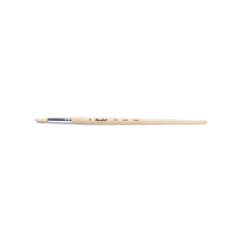 Кисть круглая из волоса щетины, обойма алюминиевая, ручка длинная, пропитана лаком. Используется для нанесения оттенков, выполнения основного объема живописной работы. Серийно выпускаются: 4; 5; 6; 7; 8; 10; 12; 14.
