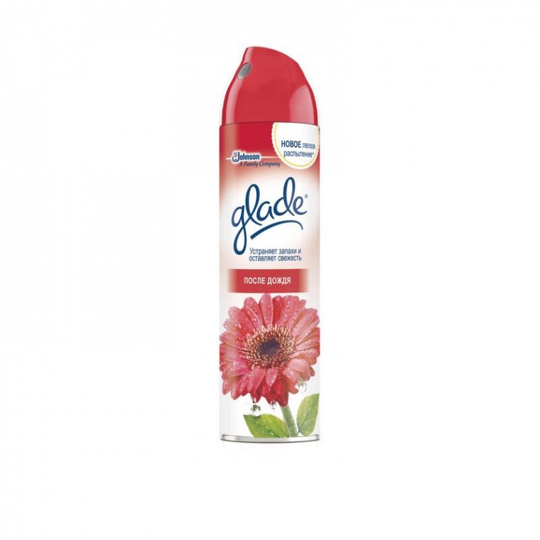 Назначение/особенности: Аэрозоль После дождя устраняет неприятные запахи и освежает воздух. Почувствуйте прохладную свежесть цветов, капель дождя и зеленой листвы на фоне умиротворенной природы, омытой росой. Предназначен для борьбы со стойкими неприятными запахами и мгновенного освежения воздуха в ванной комнате. Используйте продукцию Glade в качестве последнего штриха после уборки, чтобы наполнить комнату свежестью.