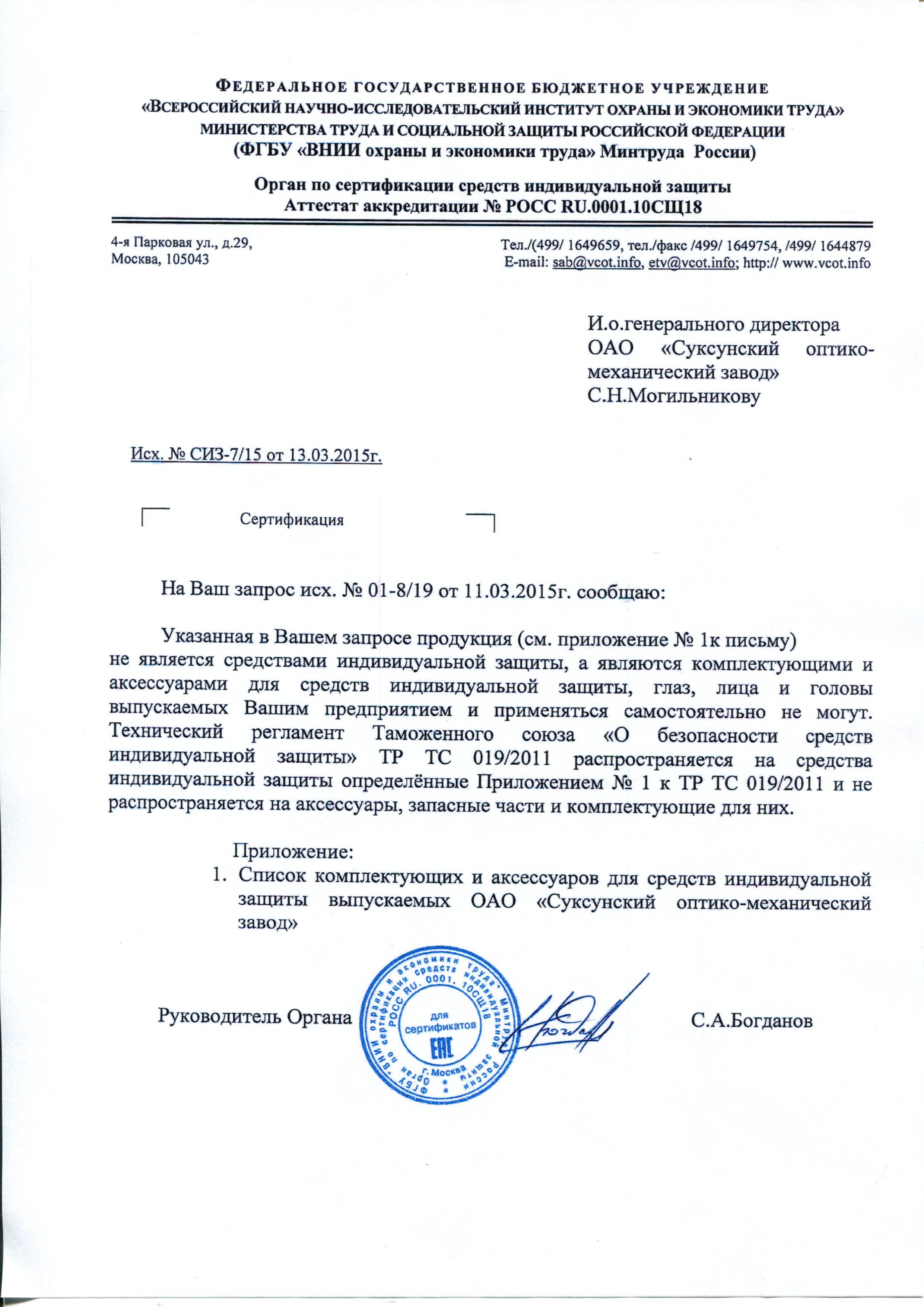 Сертификат на товар - Стекла-светофильтры для маски сварщика РОСОМЗ 110х90мм (10 штук в упаковке, артикул производителя 00266)