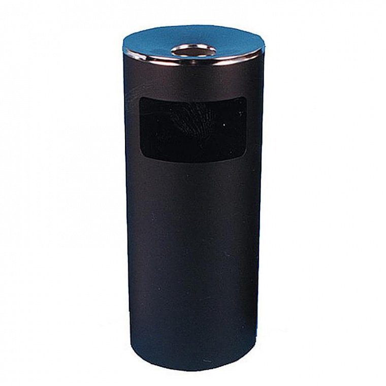 Металлическая стационарная урна выполнена из оцинкованной стали с хромированным покрытием. Урна предназначена для использования внутри и вне помещений. Урна снабжена безопасной емкостью для пепла в верхней части. Контейнер обладает прочностью, устойчив к вмятинам, легко моется обычными средствами и водой. На крышке не остаются следы пальцев. Габариты контейнера — 25×60 см. Возможность крепления мешка для мусора не предусмотрена.