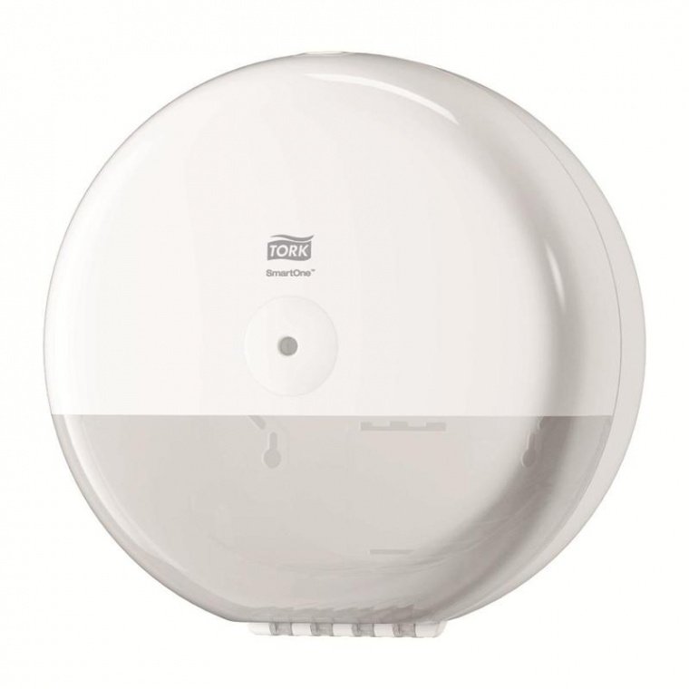 Держатель для туалетной бумаги с центральной вытяжкой Tork SmartOne Т8 в рул 680000 изготовлен из пластика белого цвета. Прочная конструкция с металлическим ключом и замком, что защищает рулон и предотвращает хищение бумаги. Размеры держателя (ВхШхГ): 269×156×269 мм.